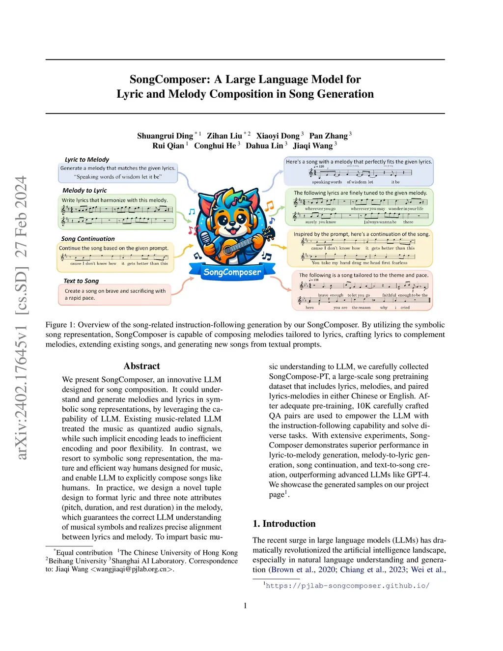 Creating lyrics and melodies for the vocal track in a symbolic format, known as song composition, demands expert musical knowledge of melody, an advanced understanding of lyrics, and precise alignment between them. Despite achievements in sub-tasks such as lyric generation, lyric-to-melody, and melody-to-lyric, etc, a unified model for song composition has not yet been achieved. In this paper, we introduce SongComposer, a pioneering step towards a unified song composition model that can readily create symbolic lyrics and melodies following instructions. SongComposer is a music-specialized large language model (LLM) that, for the first time, integrates the capability of simultaneously composing lyrics and melodies into LLMs by leveraging three key innovations: 1) a flexible tuple format for word-level alignment of lyrics and melodies, 2) an extended tokenizer vocabulary for song notes, with scalar initialization based on musical knowledge to capture rhythm, and 3) a multi-stage pipeline that captures musical structure, starting with motif-level melody patterns and progressing to phrase-level structure for improved coherence. Extensive experiments demonstrate that SongComposer outperforms advanced LLMs, including GPT-4, in tasks such as lyric-to-melody generation, melody-to-lyric generation, song continuation, and text-to-song creation. Moreover, we will release SongCompose, a large-scale dataset for training, containing paired lyrics and melodies in Chinese and English.