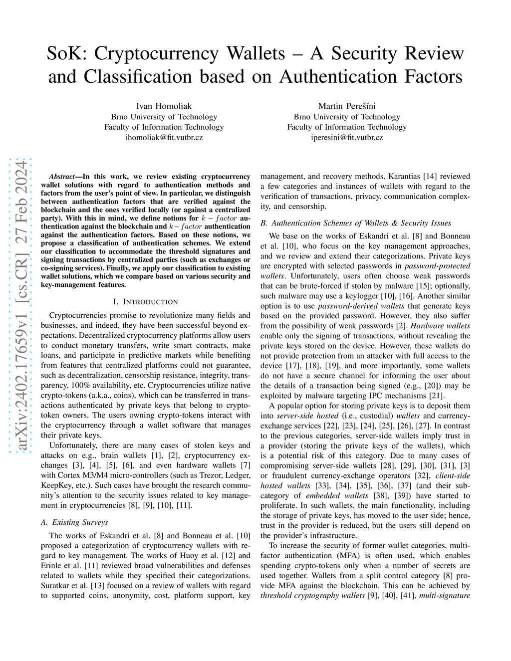 SoK: Cryptocurrency Wallets -- A Security Review and Classification