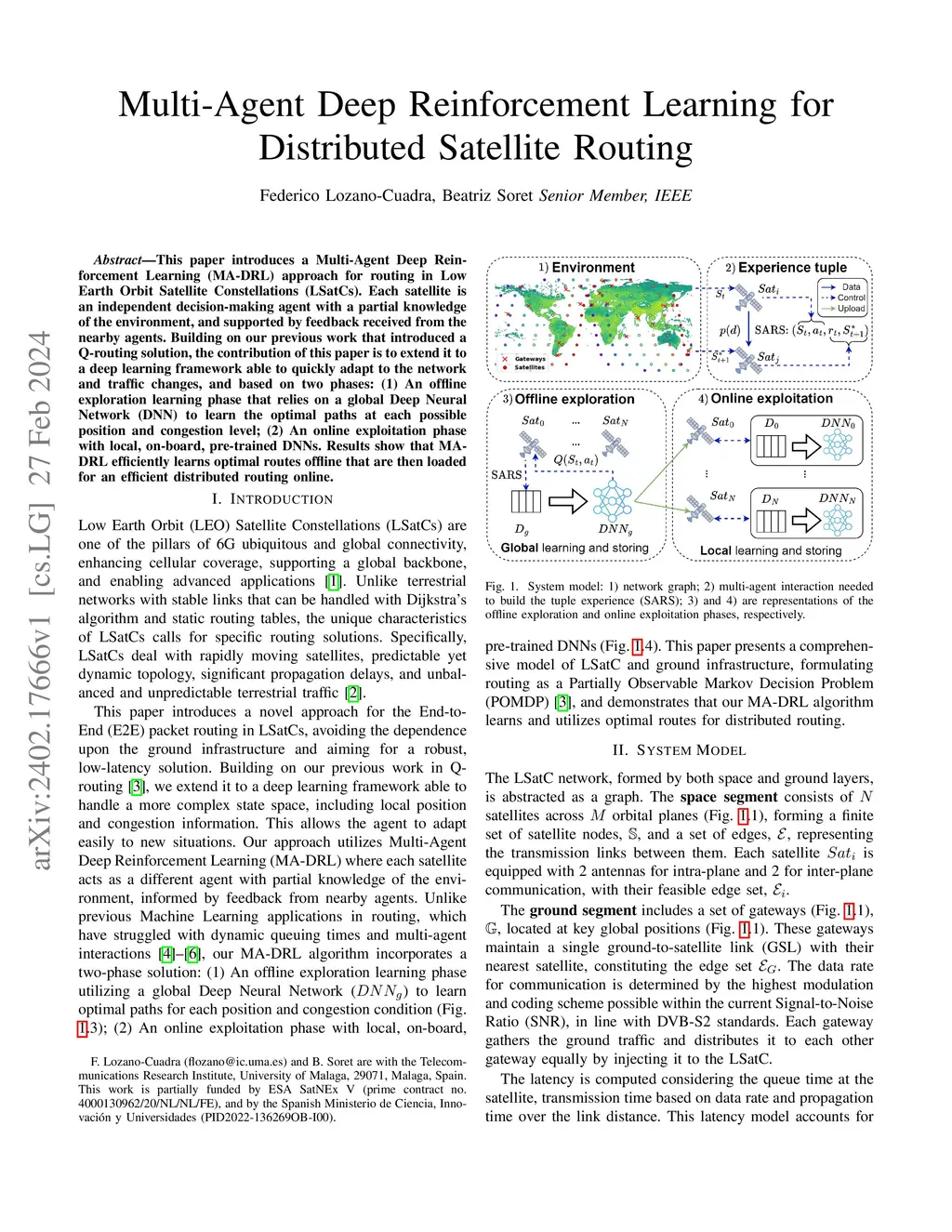 This paper introduces a Multi-Agent Deep Reinforcement Learning (MA-DRL) approach for routing in Low Earth Orbit Satellite Constellations (LSatCs). Each satellite is an independent decision-making agent with a partial knowledge of the environment, and supported by feedback received from the nearby agents. Building on our previous work that introduced a Q-routing solution, the contribution of this paper is to extend it to a deep learning framework able to quickly adapt to the network and traffic changes, and based on two phases: (1) An offline exploration learning phase that relies on a global Deep Neural Network (DNN) to learn the optimal paths at each possible position and congestion level; (2) An online exploitation phase with local, on-board, pre-trained DNNs. Results show that MA-DRL efficiently learns optimal routes offline that are then loaded for an efficient distributed routing online.