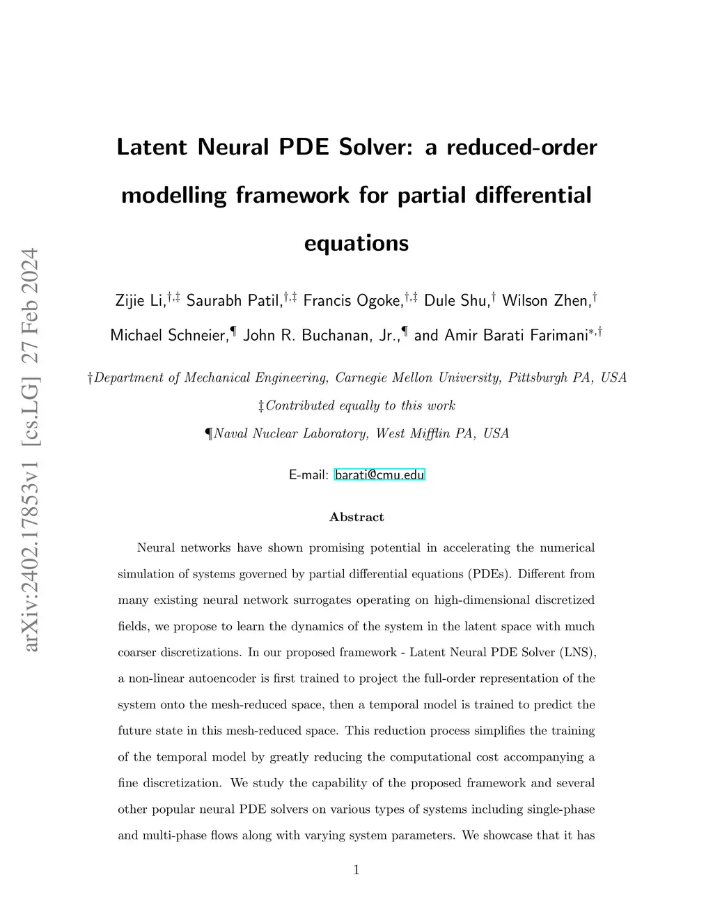 Latent Neural PDE Solver: a reduced-order modelling framework for partial differential equations