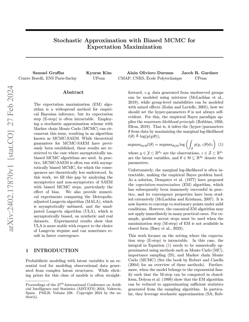 The expectation maximization (EM) algorithm is a widespread method for empirical Bayesian inference, but its expectation step (E-step) is often intractable. Employing a stochastic approximation scheme with Markov chain Monte Carlo (MCMC) can circumvent this issue, resulting in an algorithm known as MCMC-SAEM. While theoretical guarantees for MCMC-SAEM have previously been established, these results are restricted to the case where asymptotically unbiased MCMC algorithms are used. In practice, MCMC-SAEM is often run with asymptotically biased MCMC, for which the consequences are theoretically less understood. In this work, we fill this gap by analyzing the asymptotics and non-asymptotics of SAEM with biased MCMC steps, particularly the effect of bias. We also provide numerical experiments comparing the Metropolis-adjusted Langevin algorithm (MALA), which is asymptotically unbiased, and the unadjusted Langevin algorithm (ULA), which is asymptotically biased, on synthetic and real datasets. Experimental results show that ULA is more stable with respect to the choice of Langevin stepsize and can sometimes result in faster convergence.