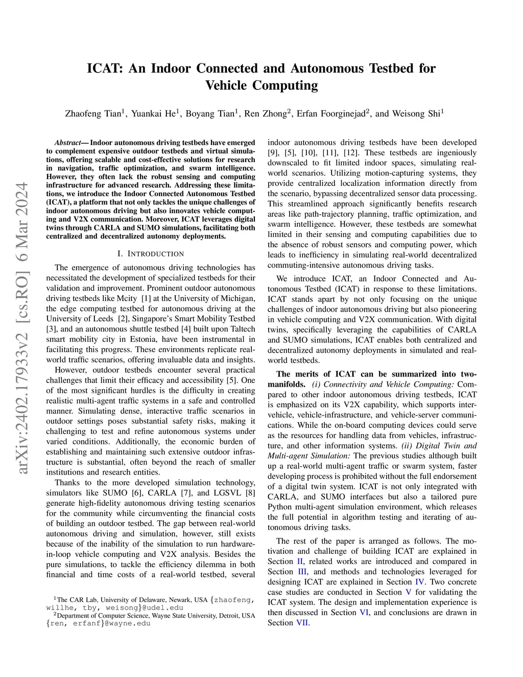 ICAT: An Indoor Connected and Autonomous Testbed for Vehicle Computing