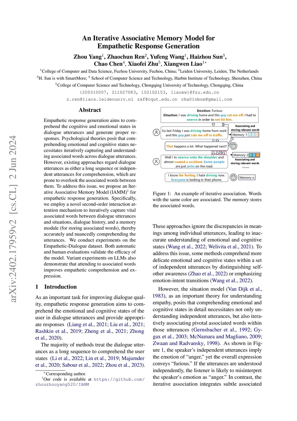 An Iterative Associative Memory Model for Empathetic Response Generation