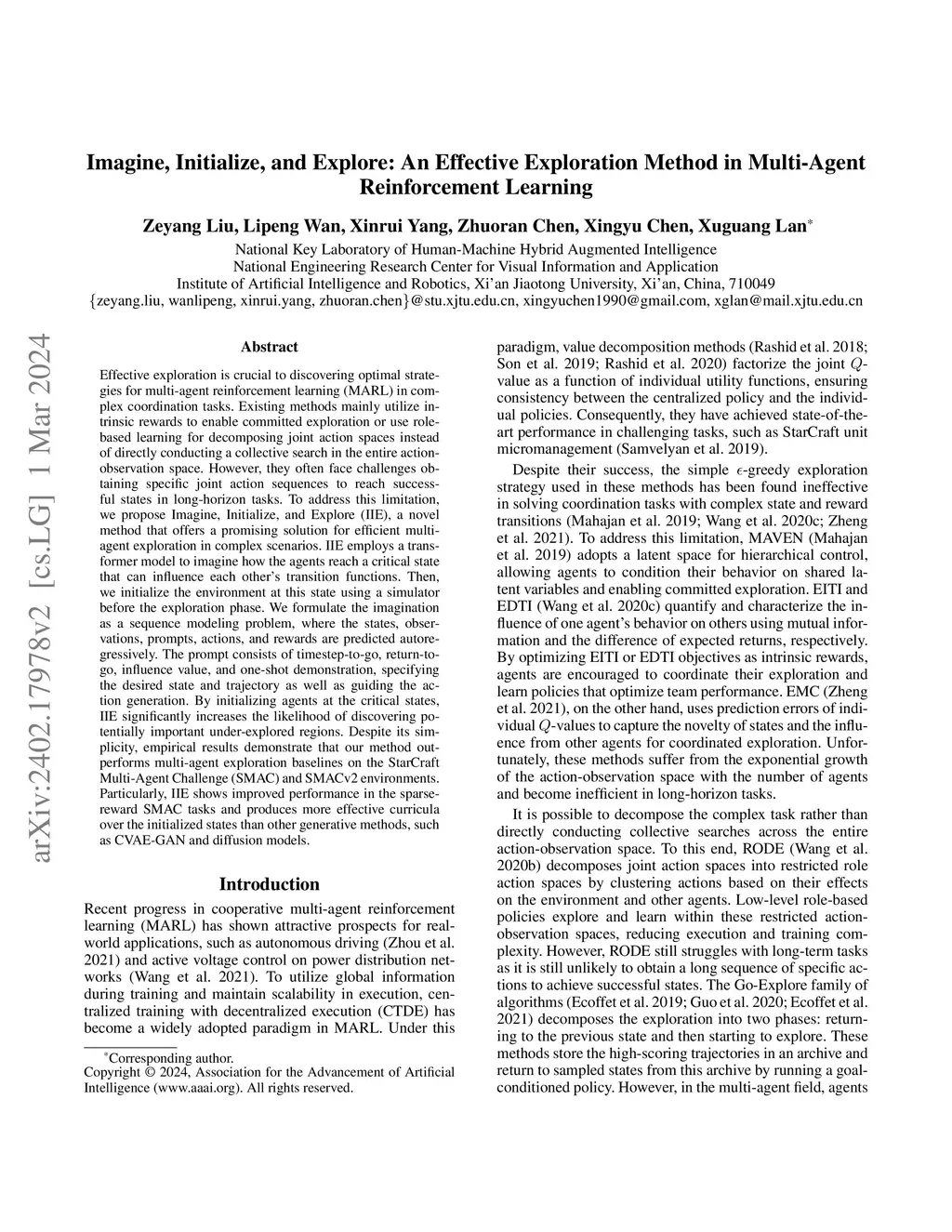 Effective exploration is crucial to discovering optimal strategies for multi-agent reinforcement learning (MARL) in complex coordination tasks. Existing methods mainly utilize intrinsic rewards to enable committed exploration or use role-based learning for decomposing joint action spaces instead of directly conducting a collective search in the entire action-observation space. However, they often face challenges obtaining specific joint action sequences to reach successful states in long-horizon tasks. To address this limitation, we propose Imagine, Initialize, and Explore (IIE), a novel method that offers a promising solution for efficient multi-agent exploration in complex scenarios. IIE employs a transformer model to imagine how the agents reach a critical state that can influence each other's transition functions. Then, we initialize the environment at this state using a simulator before the exploration phase. We formulate the imagination as a sequence modeling problem, where the states, observations, prompts, actions, and rewards are predicted autoregressively. The prompt consists of timestep-to-go, return-to-go, influence value, and one-shot demonstration, specifying the desired state and trajectory as well as guiding the action generation. By initializing agents at the critical states, IIE significantly increases the likelihood of discovering potentially important under-explored regions. Despite its simplicity, empirical results demonstrate that our method outperforms multi-agent exploration baselines on the StarCraft Multi-Agent Challenge (SMAC) and SMACv2 environments. Particularly, IIE shows improved performance in the sparse-reward SMAC tasks and produces more effective curricula over the initialized states than other generative methods, such as CVAE-GAN and diffusion models.