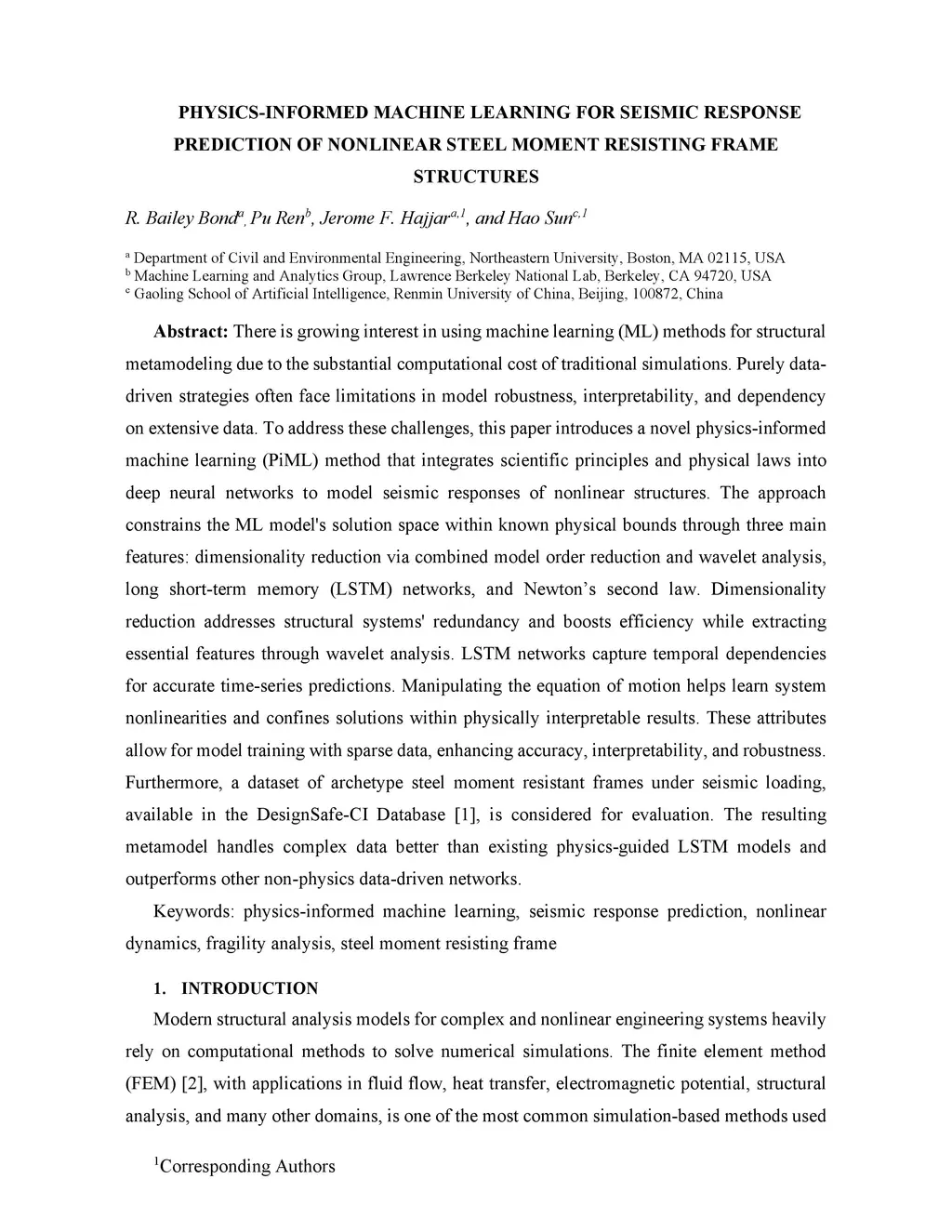 Physics-Informed Machine Learning for Seismic Response Prediction OF