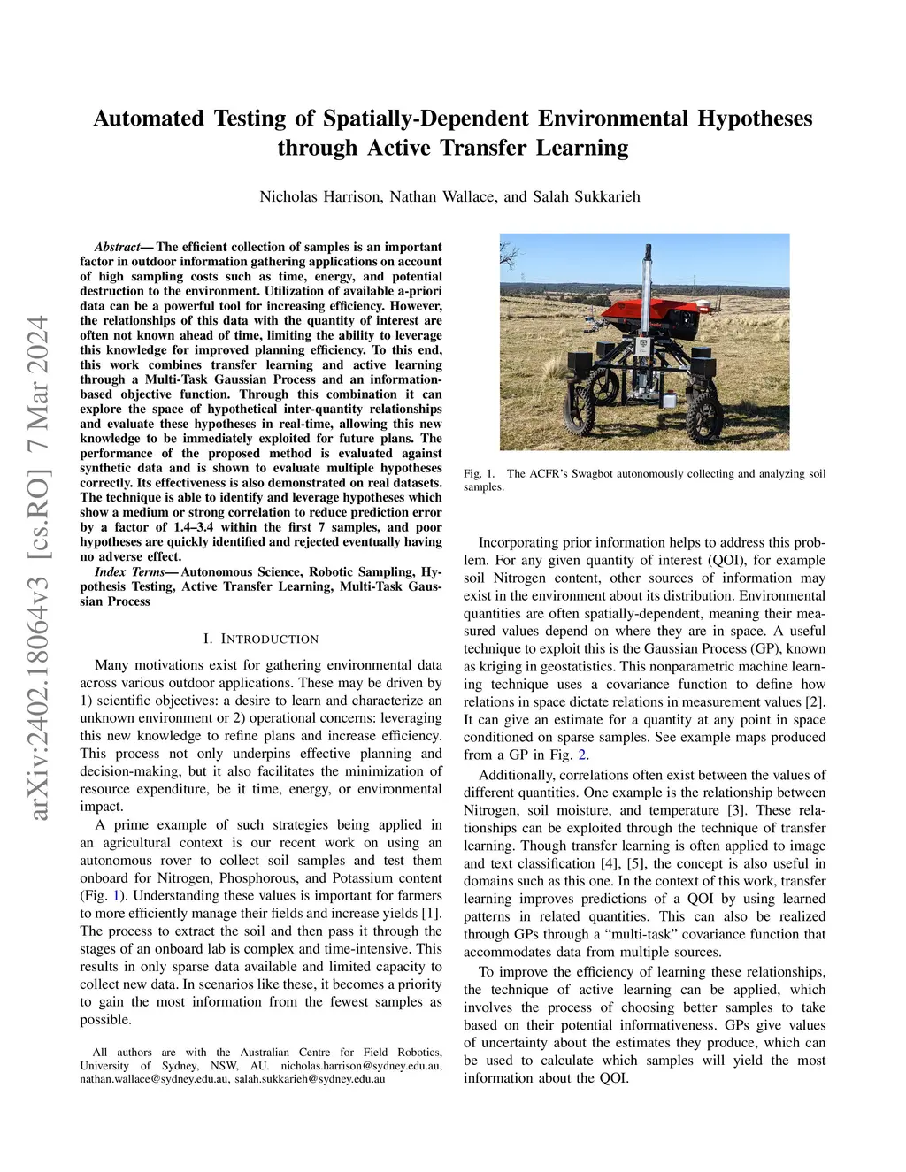 The efficient collection of samples is an important factor in outdoor information gathering applications on account of high sampling costs such as time, energy, and potential destruction to the environment. Utilization of available a-priori data can be a powerful tool for increasing efficiency. However, the relationships of this data with the quantity of interest are often not known ahead of time, limiting the ability to leverage this knowledge for improved planning efficiency. To this end, this work combines transfer learning and active learning through a Multi-Task Gaussian Process and an information-based objective function. Through this combination it can explore the space of hypothetical inter-quantity relationships and evaluate these hypotheses in real-time, allowing this new knowledge to be immediately exploited for future plans. The performance of the proposed method is evaluated against synthetic data and is shown to evaluate multiple hypotheses correctly. Its effectiveness is also demonstrated on real datasets. The technique is able to identify and leverage hypotheses which show a medium or strong correlation to reduce prediction error by a factor of 1.4--3.4 within the first 7 samples, and poor hypotheses are quickly identified and rejected eventually having no adverse effect.