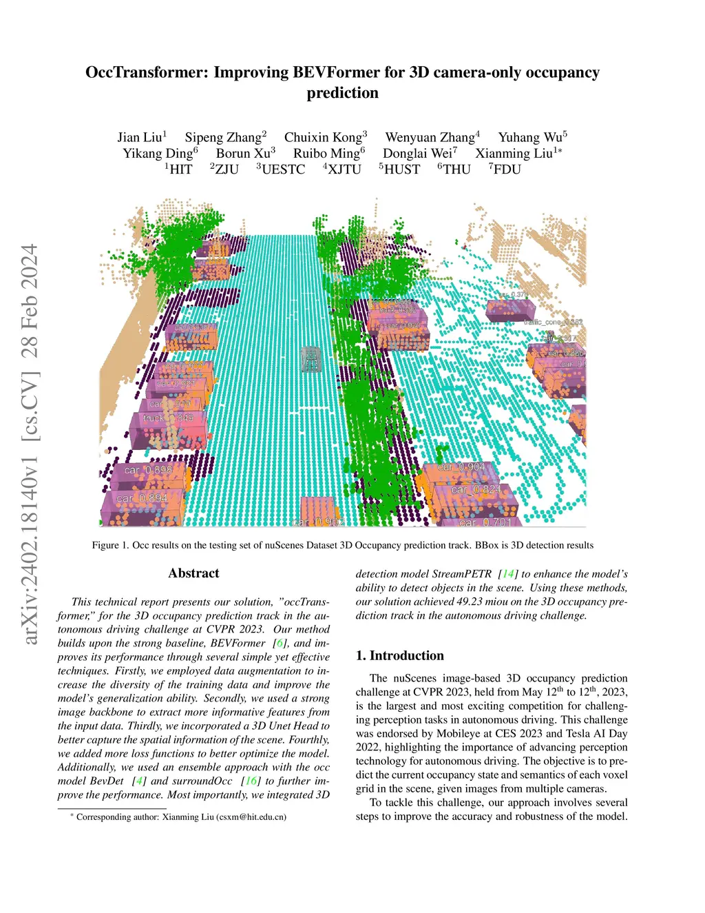 This technical report presents our solution, "occTransformer" for the 3D occupancy prediction track in the autonomous driving challenge at CVPR 2023. Our method builds upon the strong baseline BEVFormer and improves its performance through several simple yet effective techniques. Firstly, we employed data augmentation to increase the diversity of the training data and improve the model's generalization ability. Secondly, we used a strong image backbone to extract more informative features from the input data. Thirdly, we incorporated a 3D unet head to better capture the spatial information of the scene. Fourthly, we added more loss functions to better optimize the model. Additionally, we used an ensemble approach with the occ model BevDet and SurroundOcc to further improve the performance. Most importantly, we integrated 3D detection model StreamPETR to enhance the model's ability to detect objects in the scene. Using these methods, our solution achieved 49.23 miou on the 3D occupancy prediction track in the autonomous driving challenge.