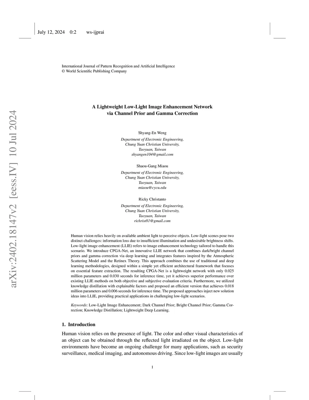 Human vision relies heavily on available ambient light to perceive objects. Low-light scenes pose two distinct challenges: information loss due to insufficient illumination and undesirable brightness shifts. Low-light image enhancement (LLIE) refers to image enhancement technology tailored to handle this scenario. We introduce CPGA-Net, an innovative LLIE network that combines dark/bright channel priors and gamma correction via deep learning and integrates features inspired by the Atmospheric Scattering Model and the Retinex Theory. This approach combines the use of traditional and deep learning methodologies, designed within a simple yet efficient architectural framework that focuses on essential feature extraction. The resulting CPGA-Net is a lightweight network with only 0.025 million parameters and 0.030 seconds for inference time, yet it achieves superior performance over existing LLIE methods on both objective and subjective evaluation criteria. Furthermore, we utilized knowledge distillation with explainable factors and proposed an efficient version that achieves 0.018 million parameters and 0.006 seconds for inference time. The proposed approaches inject new solution ideas into LLIE, providing practical applications in challenging low-light scenarios.