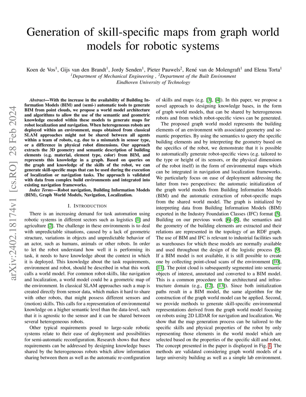 With the increase in the availability of Building Information Models (BIM) and (semi-) automatic tools to generate BIM from point clouds, we propose a world model architecture and algorithms to allow the use of the semantic and geometric knowledge encoded within these models to generate maps for robot localization and navigation. When heterogeneous robots are deployed within an environment, maps obtained from classical SLAM approaches might not be shared between all agents within a team of robots, e.g. due to a mismatch in sensor type, or a difference in physical robot dimensions. Our approach extracts the 3D geometry and semantic description of building elements (e.g. material, element type, color) from BIM, and represents this knowledge in a graph. Based on queries on the graph and knowledge of the skills of the robot, we can generate skill-specific maps that can be used during the execution of localization or navigation tasks. The approach is validated with data from complex build environments and integrated into existing navigation frameworks.