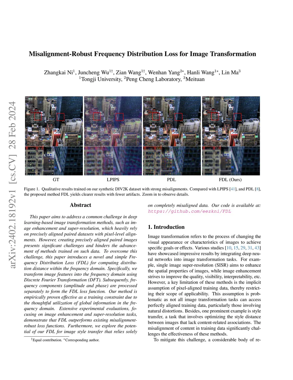 Misalignment-Robust Frequency Distribution Loss for Image Transformation