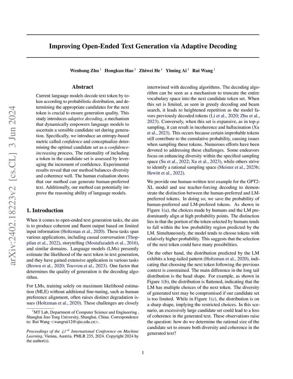 Improving Open-Ended Text Generation via Adaptive Decoding