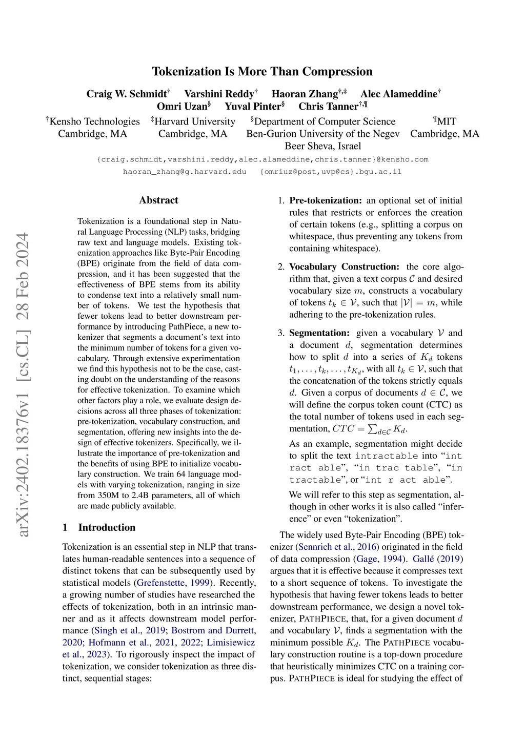 Tokenization is a foundational step in Natural Language Processing (NLP) tasks, bridging raw text and language models. Existing tokenization approaches like Byte-Pair Encoding (BPE) originate from the field of data compression, and it has been suggested that the effectiveness of BPE stems from its ability to condense text into a relatively small number of tokens. We test the hypothesis that fewer tokens lead to better downstream performance by introducing PathPiece, a new tokenizer that segments a document's text into the minimum number of tokens for a given vocabulary. Through extensive experimentation we find this hypothesis not to be the case, casting doubt on the understanding of the reasons for effective tokenization. To examine which other factors play a role, we evaluate design decisions across all three phases of tokenization: pre-tokenization, vocabulary construction, and segmentation, offering new insights into the design of effective tokenizers. Specifically, we illustrate the importance of pre-tokenization and the benefits of using BPE to initialize vocabulary construction. We train 64 language models with varying tokenization, ranging in size from 350M to 2.4B parameters, all of which are made publicly available.