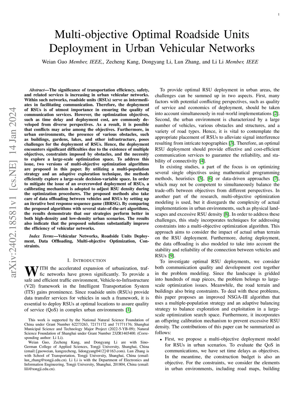 Multi-objective Optimal Roadside Units Deployment in Urban Vehicular
