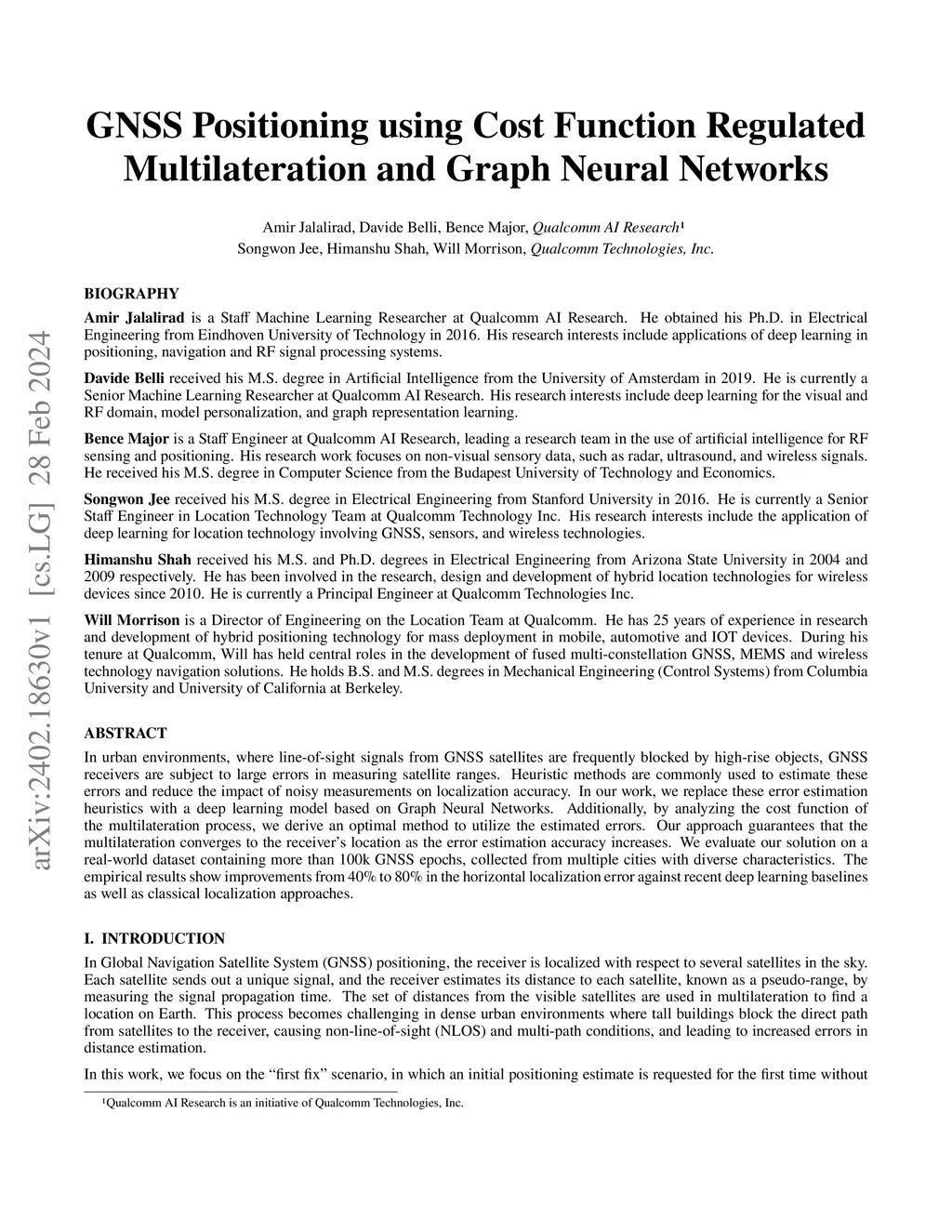 In urban environments, where line-of-sight signals from GNSS satellites are frequently blocked by high-rise objects, GNSS receivers are subject to large errors in measuring satellite ranges. Heuristic methods are commonly used to estimate these errors and reduce the impact of noisy measurements on localization accuracy. In our work, we replace these error estimation heuristics with a deep learning model based on Graph Neural Networks. Additionally, by analyzing the cost function of the multilateration process, we derive an optimal method to utilize the estimated errors. Our approach guarantees that the multilateration converges to the receiver's location as the error estimation accuracy increases. We evaluate our solution on a real-world dataset containing more than 100k GNSS epochs, collected from multiple cities with diverse characteristics. The empirical results show improvements from 40% to 80% in the horizontal localization error against recent deep learning baselines as well as classical localization approaches.