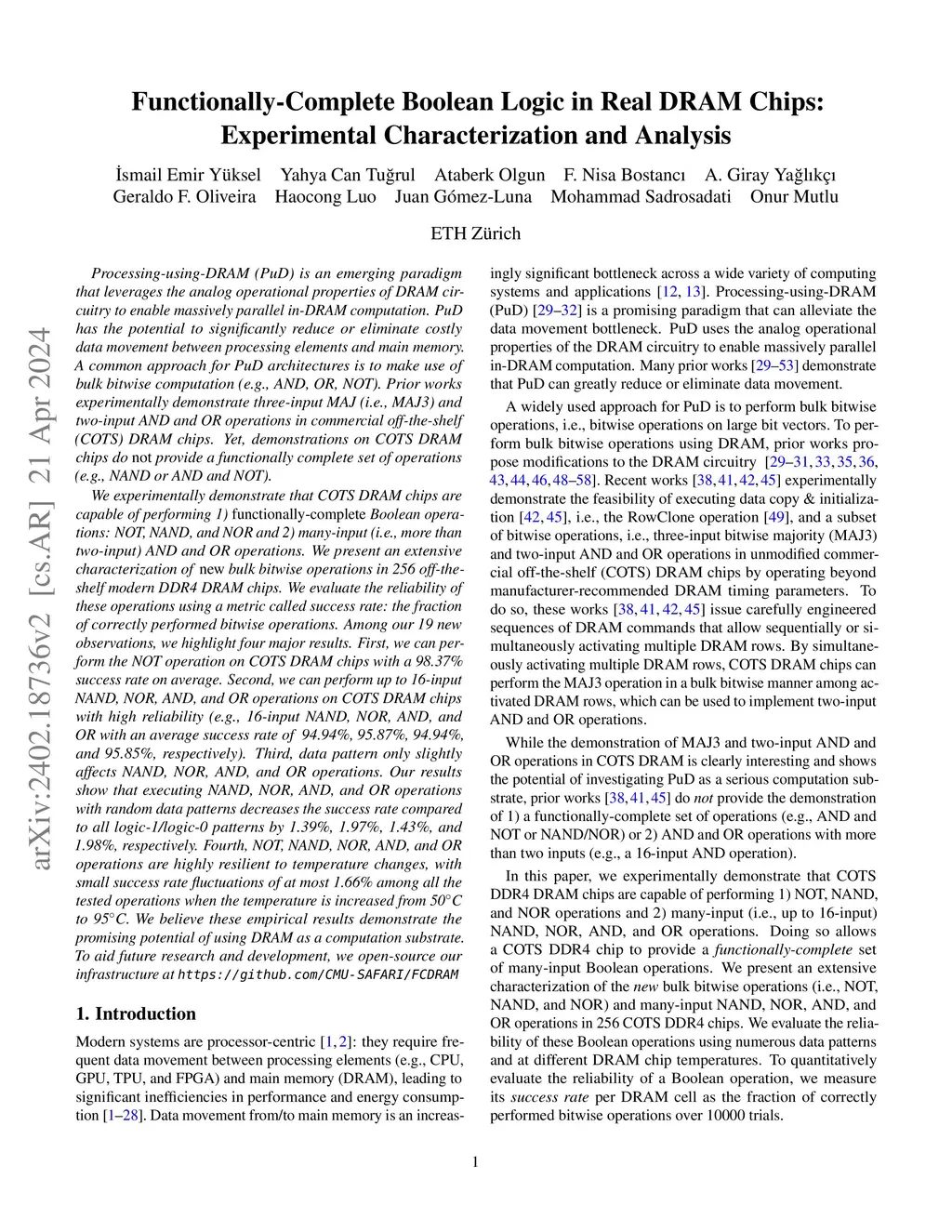 Functionally-Complete Boolean Logic in Real DRAM Chips: Experimental