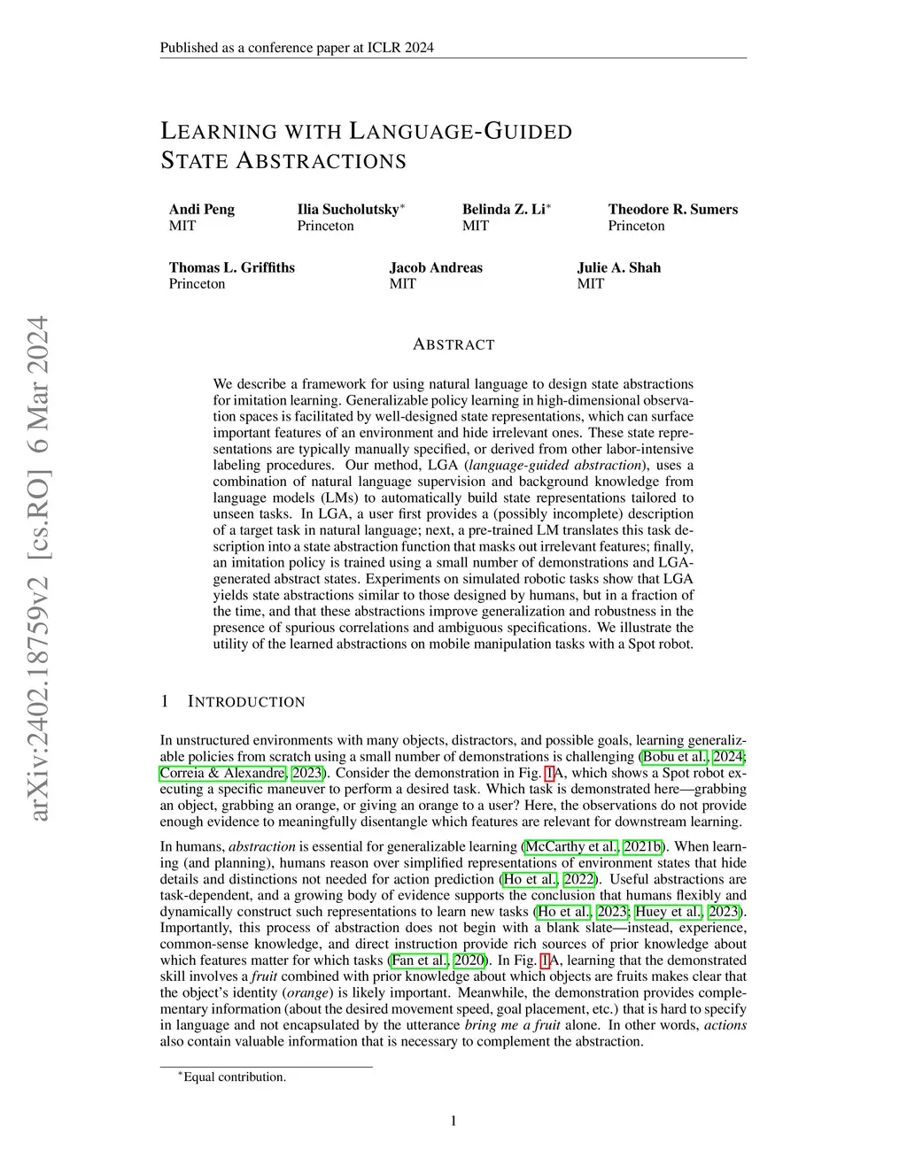 Learning with Language-Guided State Abstractions