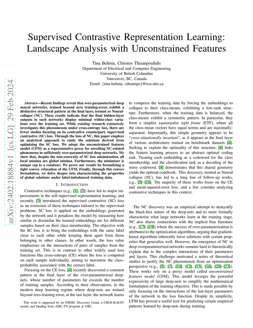 Supervised Contrastive Representation Learning: Landscape Analysis with