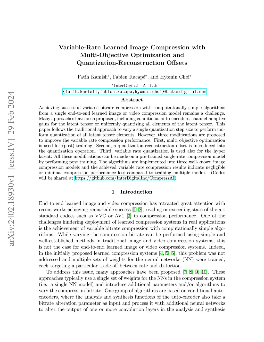 Achieving successful variable bitrate compression with computationally simple algorithms from a single end-to-end learned image or video compression model remains a challenge. Many approaches have been proposed, including conditional auto-encoders, channel-adaptive gains for the latent tensor or uniformly quantizing all elements of the latent tensor. This paper follows the traditional approach to vary a single quantization step size to perform uniform quantization of all latent tensor elements. However, three modifications are proposed to improve the variable rate compression performance. First, multi objective optimization is used for (post) training. Second, a quantization-reconstruction offset is introduced into the quantization operation. Third, variable rate quantization is used also for the hyper latent. All these modifications can be made on a pre-trained single-rate compression model by performing post training. The algorithms are implemented into three well-known image compression models and the achieved variable rate compression results indicate negligible or minimal compression performance loss compared to training multiple models. (Codes will be shared at https://github.com/InterDigitalInc/CompressAI)