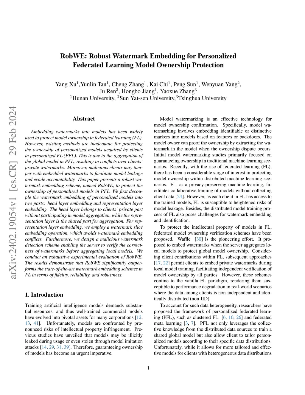 Embedding watermarks into models has been widely used to protect model ownership in federated learning (FL). However, existing methods are inadequate for protecting the ownership of personalized models acquired by clients in personalized FL (PFL). This is due to the aggregation of the global model in PFL, resulting in conflicts over clients' private watermarks. Moreover, malicious clients may tamper with embedded watermarks to facilitate model leakage and evade accountability. This paper presents a robust watermark embedding scheme, named RobWE, to protect the ownership of personalized models in PFL. We first decouple the watermark embedding of personalized models into two parts: head layer embedding and representation layer embedding. The head layer belongs to clients' private part without participating in model aggregation, while the representation layer is the shared part for aggregation. For representation layer embedding, we employ a watermark slice embedding operation, which avoids watermark embedding conflicts. Furthermore, we design a malicious watermark detection scheme enabling the server to verify the correctness of watermarks before aggregating local models. We conduct an exhaustive experimental evaluation of RobWE. The results demonstrate that RobWE significantly outperforms the state-of-the-art watermark embedding schemes in FL in terms of fidelity, reliability, and robustness.