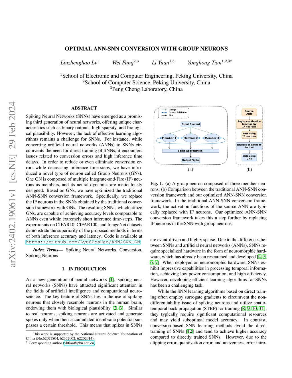 Spiking Neural Networks (SNNs) have emerged as a promising third generation of neural networks, offering unique characteristics such as binary outputs, high sparsity, and biological plausibility. However, the lack of effective learning algorithms remains a challenge for SNNs. For instance, while converting artificial neural networks (ANNs) to SNNs circumvents the need for direct training of SNNs, it encounters issues related to conversion errors and high inference time delays. In order to reduce or even eliminate conversion errors while decreasing inference time-steps, we have introduced a novel type of neuron called Group Neurons (GNs). One GN is composed of multiple Integrate-and-Fire (IF) neurons as members, and its neural dynamics are meticulously designed. Based on GNs, we have optimized the traditional ANN-SNN conversion framework. Specifically, we replace the IF neurons in the SNNs obtained by the traditional conversion framework with GNs. The resulting SNNs, which utilize GNs, are capable of achieving accuracy levels comparable to ANNs even within extremely short inference time-steps. The experiments on CIFAR10, CIFAR100, and ImageNet datasets demonstrate the superiority of the proposed methods in terms of both inference accuracy and latency. Code is available at https://github.com/Lyu6PosHao/ANN2SNN_GN.