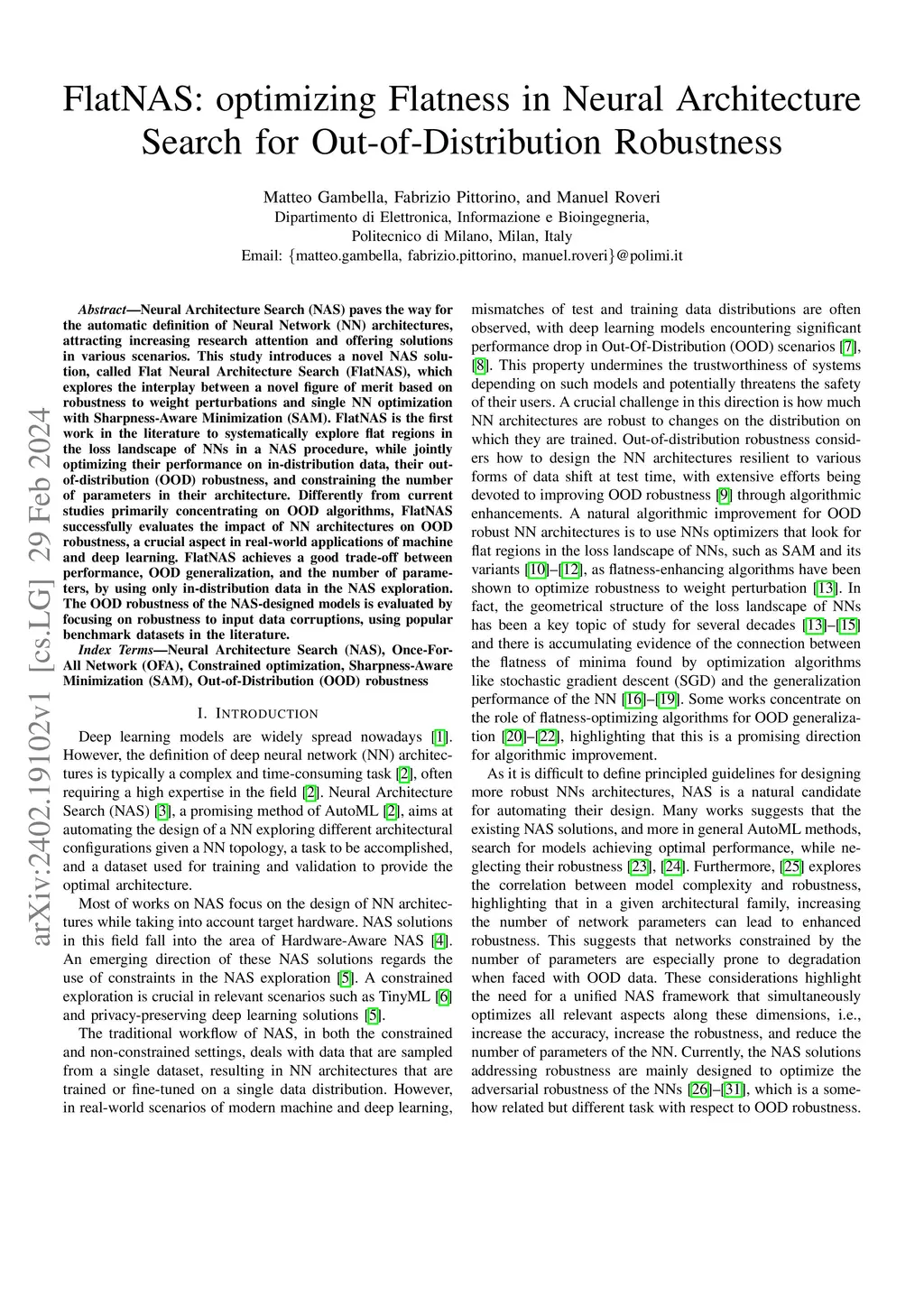 FlatNAS: optimizing Flatness in Neural Architecture Search for