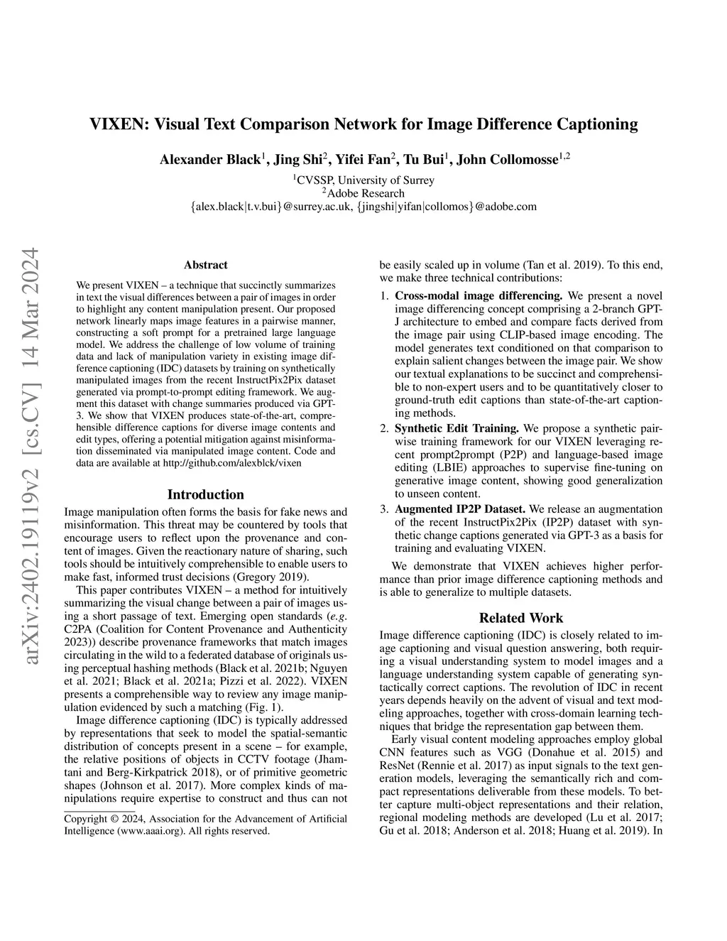 VIXEN: Visual Text Comparison Network for Image Difference Captioning