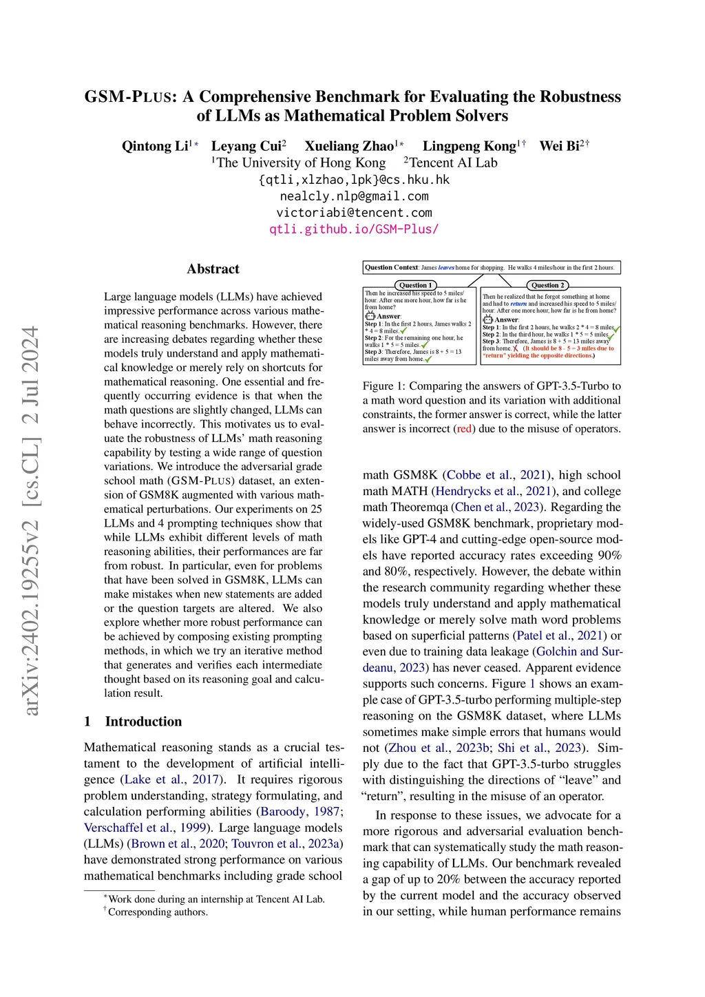 GSM-Plus: A Comprehensive Benchmark for Evaluating the Robustness of
