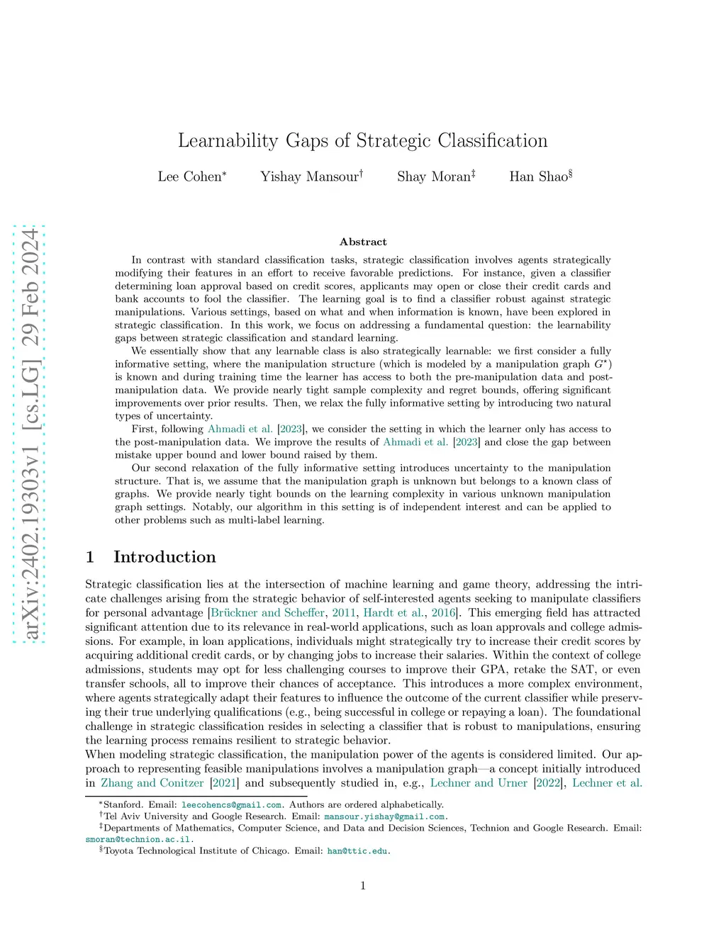 In contrast with standard classification tasks, strategic classification involves agents strategically modifying their features in an effort to receive favorable predictions. For instance, given a classifier determining loan approval based on credit scores, applicants may open or close their credit cards to fool the classifier. The learning goal is to find a classifier robust against strategic manipulations. Various settings, based on what and when information is known, have been explored in strategic classification. In this work, we focus on addressing a fundamental question: the learnability gaps between strategic classification and standard learning. We essentially show that any learnable class is also strategically learnable: we first consider a fully informative setting, where the manipulation structure (which is modeled by a manipulation graph ) is known and during training time the learner has access to both the pre-manipulation data and post-manipulation data. We provide nearly tight sample complexity and regret bounds, offering significant improvements over prior results. Then, we relax the fully informative setting by introducing two natural types of uncertainty. First, following Ahmadi et al. (2023), we consider the setting in which the learner only has access to the post-manipulation data. We improve the results of Ahmadi et al. (2023) and close the gap between mistake upper bound and lower bound raised by them. Our second relaxation of the fully informative setting introduces uncertainty to the manipulation structure. That is, we assume that the manipulation graph is unknown but belongs to a known class of graphs. We provide nearly tight bounds on the learning complexity in various unknown manipulation graph settings. Notably, our algorithm in this setting is of independent interest and can be applied to other problems such as multi-label learning.