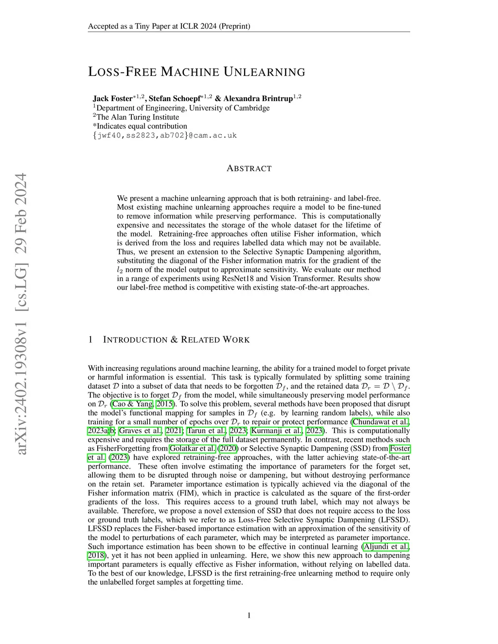 We present a machine unlearning approach that is both retraining- and label-free. Most existing machine unlearning approaches require a model to be fine-tuned to remove information while preserving performance. This is computationally expensive and necessitates the storage of the whole dataset for the lifetime of the model. Retraining-free approaches often utilise Fisher information, which is derived from the loss and requires labelled data which may not be available. Thus, we present an extension to the Selective Synaptic Dampening algorithm, substituting the diagonal of the Fisher information matrix for the gradient of the l2 norm of the model output to approximate sensitivity. We evaluate our method in a range of experiments using ResNet18 and Vision Transformer. Results show our label-free method is competitive with existing state-of-the-art approaches.