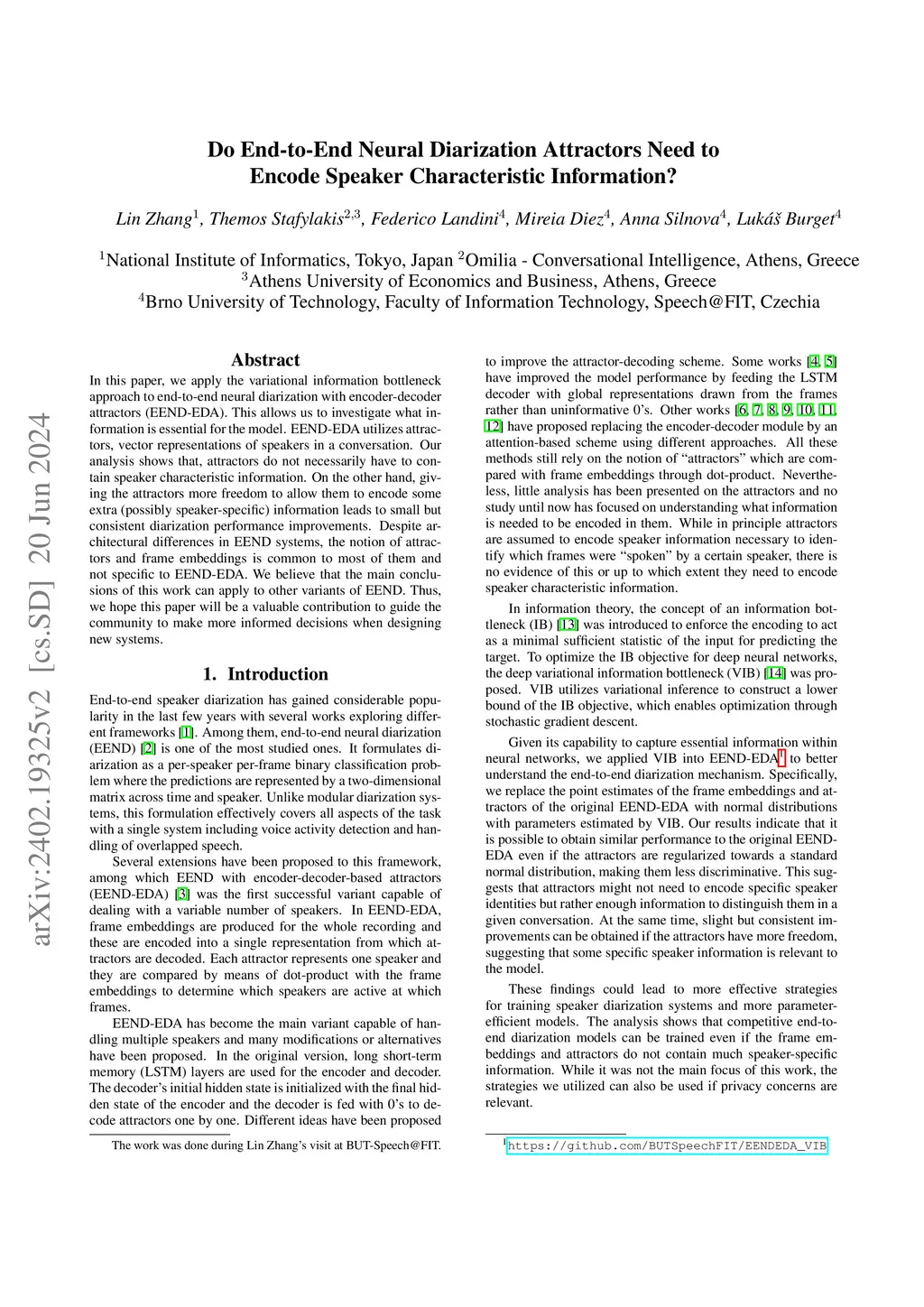In this paper, we apply the variational information bottleneck approach to end-to-end neural diarization with encoder-decoder attractors (EEND-EDA). This allows us to investigate what information is essential for the model. EEND-EDA utilizes attractors, vector representations of speakers in a conversation. Our analysis shows that, attractors do not necessarily have to contain speaker characteristic information. On the other hand, giving the attractors more freedom to allow them to encode some extra (possibly speaker-specific) information leads to small but consistent diarization performance improvements. Despite architectural differences in EEND systems, the notion of attractors and frame embeddings is common to most of them and not specific to EEND-EDA. We believe that the main conclusions of this work can apply to other variants of EEND. Thus, we hope this paper will be a valuable contribution to guide the community to make more informed decisions when designing new systems.
