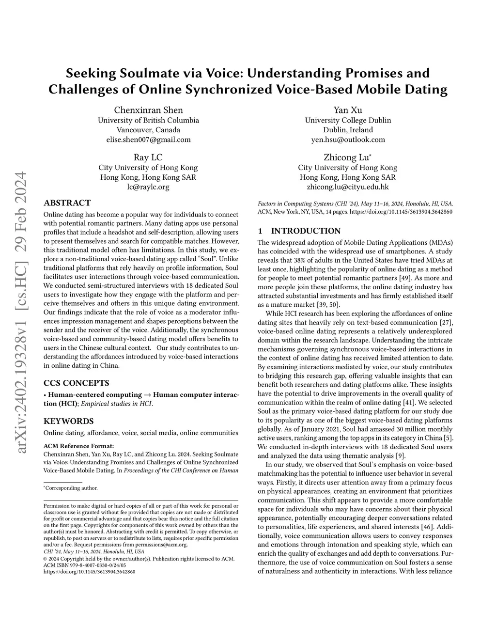 Seeking Soulmate via Voice: Understanding Promises and Challenges of