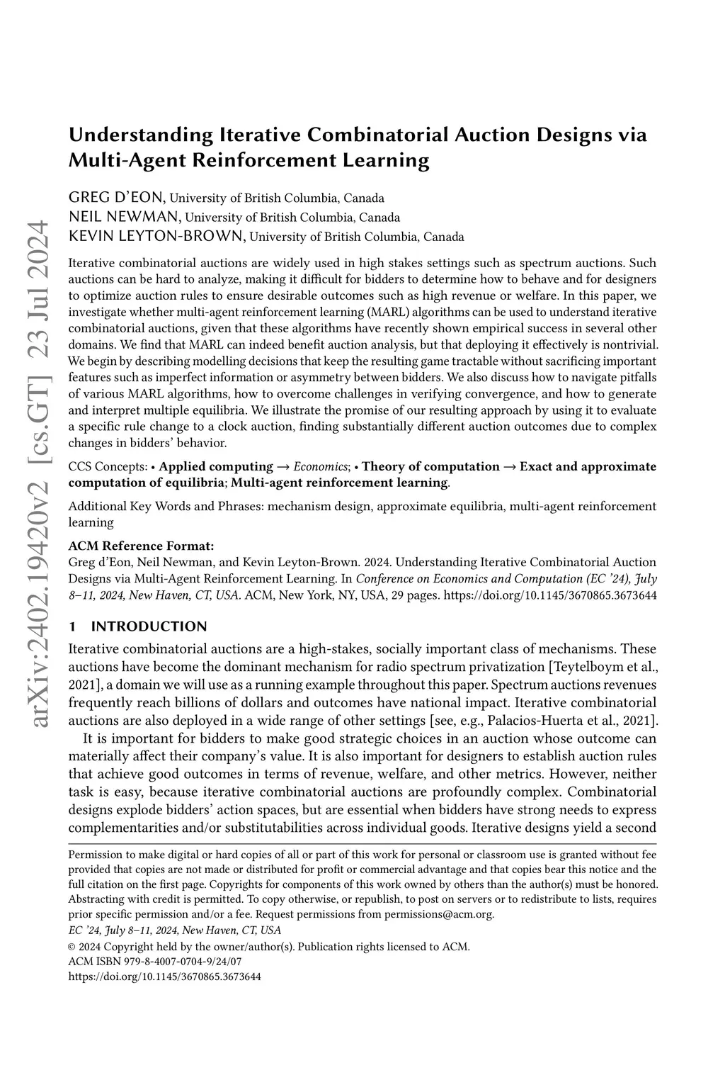Iterative combinatorial auctions are widely used in high stakes settings such as spectrum auctions. Such auctions can be hard to understand analytically, making it difficult for bidders to determine how to behave and for designers to optimize auction rules to ensure desirable outcomes such as high revenue or welfare. In this paper, we investigate whether multi-agent reinforcement learning (MARL) algorithms can be used to understand iterative combinatorial auctions, given that these algorithms have recently shown empirical success in several other domains. We find that MARL can indeed benefit auction analysis, but that deploying it effectively is nontrivial. We begin by describing modelling decisions that keep the resulting game tractable without sacrificing important features such as imperfect information or asymmetry between bidders. We also discuss how to navigate pitfalls of various MARL algorithms, how to overcome challenges in verifying convergence, and how to generate and interpret multiple equilibria. We illustrate the promise of our resulting approach by using it to evaluate a specific rule change to a clock auction, finding substantially different auction outcomes due to complex changes in bidders' behavior.