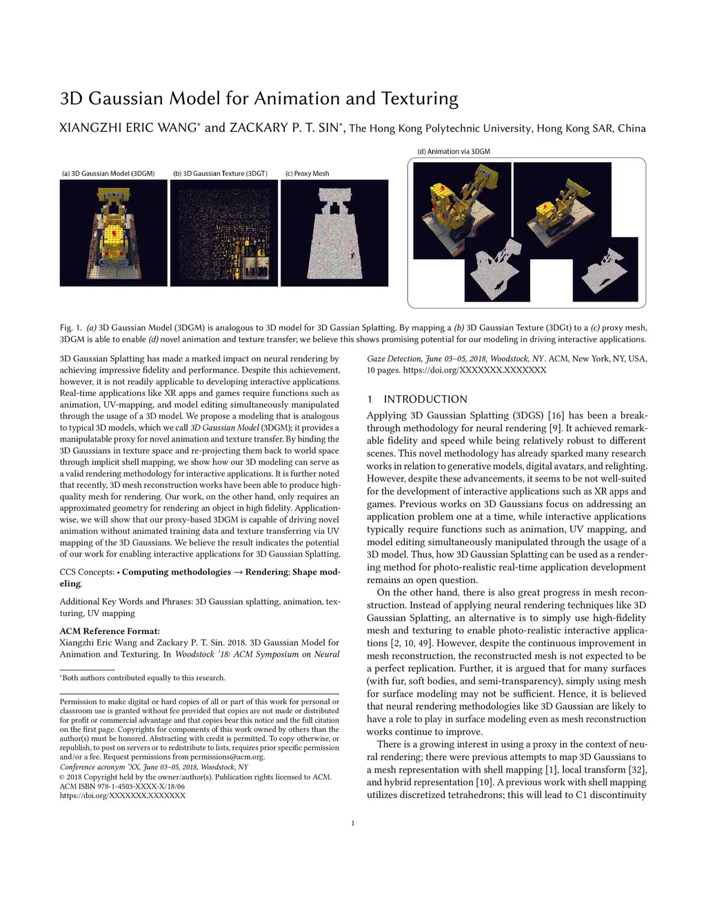 3D Gaussian Splatting has made a marked impact on neural rendering by achieving impressive fidelity and performance. Despite this achievement, however, it is not readily applicable to developing interactive applications. Real-time applications like XR apps and games require functions such as animation, UV-mapping, and model editing simultaneously manipulated through the usage of a 3D model. We propose a modeling that is analogous to typical 3D models, which we call 3D Gaussian Model (3DGM); it provides a manipulatable proxy for novel animation and texture transfer. By binding the 3D Gaussians in texture space and re-projecting them back to world space through implicit shell mapping, we show how our 3D modeling can serve as a valid rendering methodology for interactive applications. It is further noted that recently, 3D mesh reconstruction works have been able to produce high-quality mesh for rendering. Our work, on the other hand, only requires an approximated geometry for rendering an object in high fidelity. Applicationwise, we will show that our proxy-based 3DGM is capable of driving novel animation without animated training data and texture transferring via UV mapping of the 3D Gaussians. We believe the result indicates the potential of our work for enabling interactive applications for 3D Gaussian Splatting.