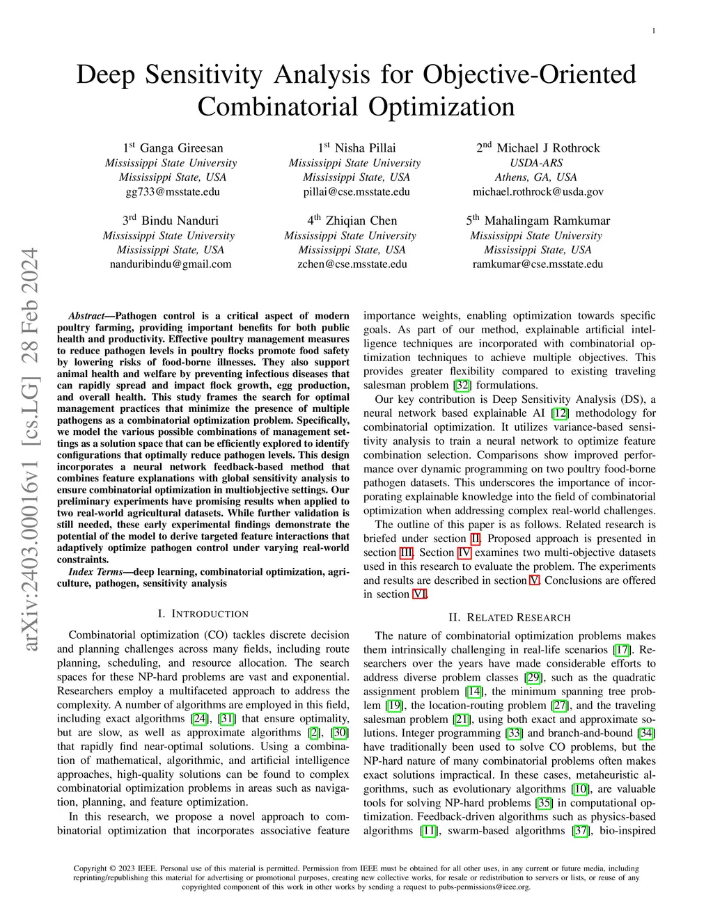 Pathogen control is a critical aspect of modern poultry farming, providing important benefits for both public health and productivity. Effective poultry management measures to reduce pathogen levels in poultry flocks promote food safety by lowering risks of food-borne illnesses. They also support animal health and welfare by preventing infectious diseases that can rapidly spread and impact flock growth, egg production, and overall health. This study frames the search for optimal management practices that minimize the presence of multiple pathogens as a combinatorial optimization problem. Specifically, we model the various possible combinations of management settings as a solution space that can be efficiently explored to identify configurations that optimally reduce pathogen levels. This design incorporates a neural network feedback-based method that combines feature explanations with global sensitivity analysis to ensure combinatorial optimization in multiobjective settings. Our preliminary experiments have promising results when applied to two real-world agricultural datasets. While further validation is still needed, these early experimental findings demonstrate the potential of the model to derive targeted feature interactions that adaptively optimize pathogen control under varying real-world constraints.