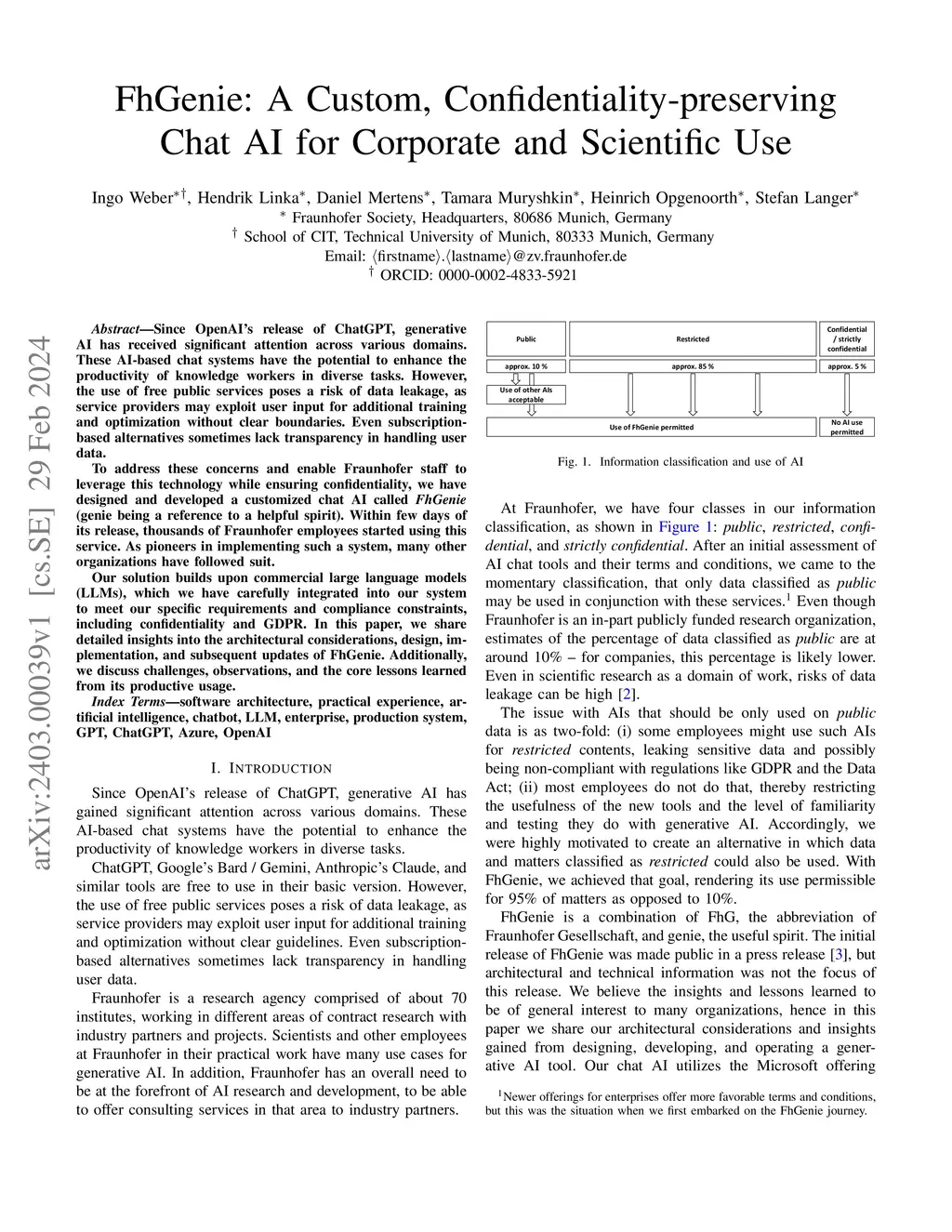 FhGenie: A Custom, Confidentiality-preserving Chat AI for Corporate and