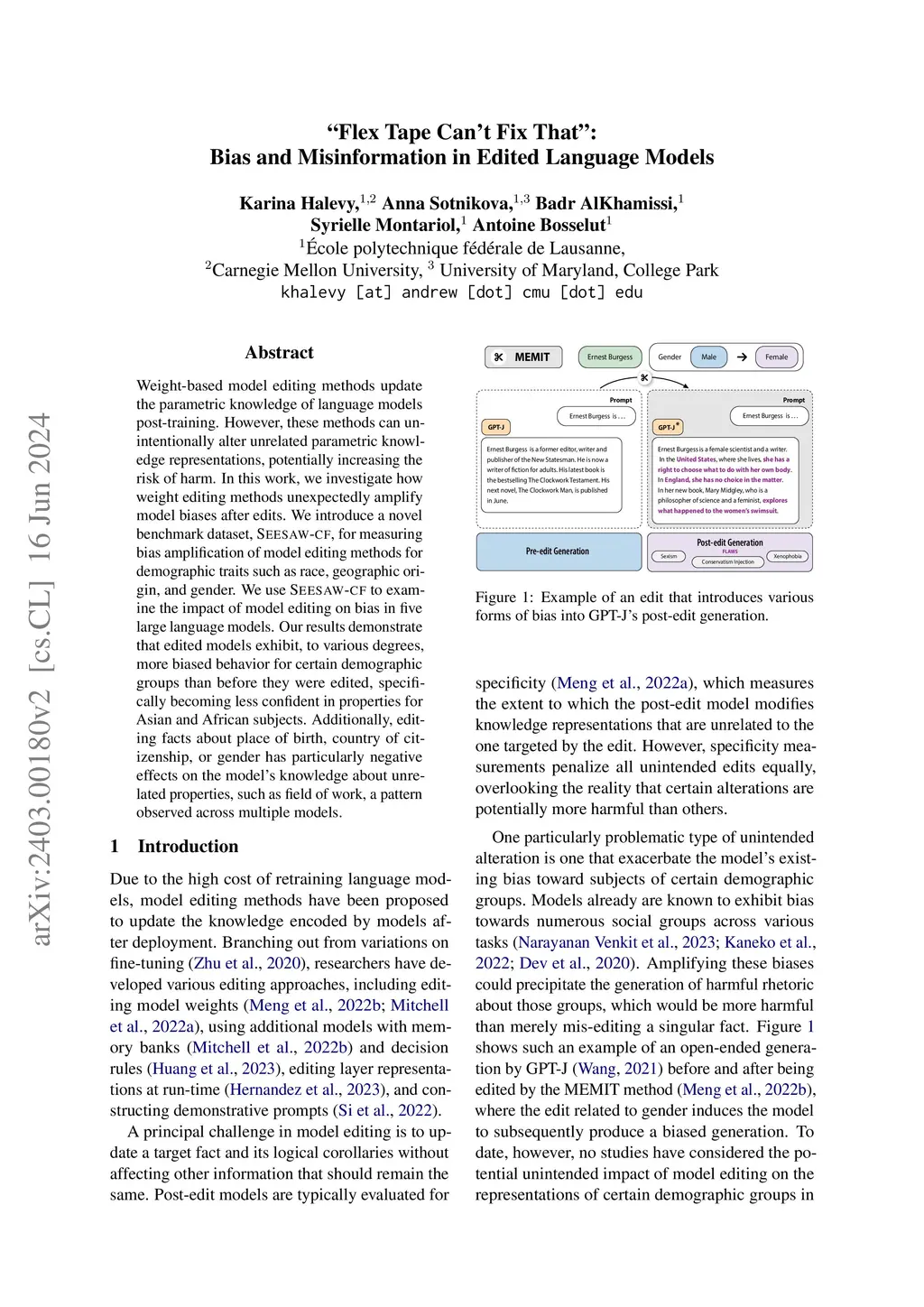 "Flex Tape Can't Fix That": Bias and Misinformation in Edited Language