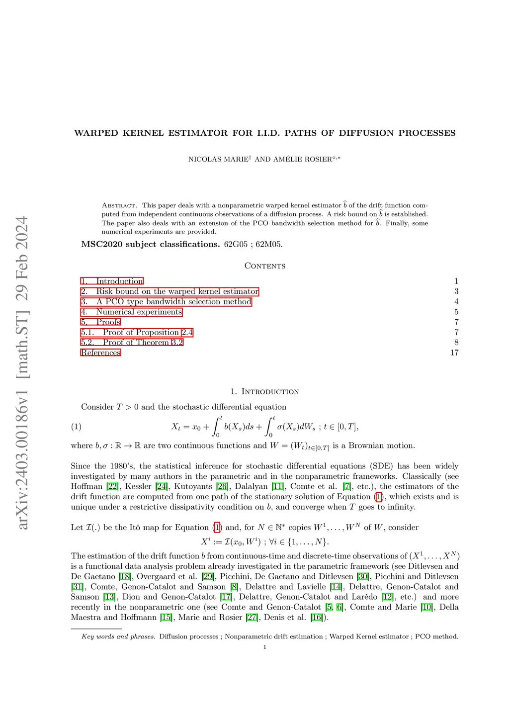 Warped Kernel Estimator for I.I.D. Paths of Diffusion Processes
