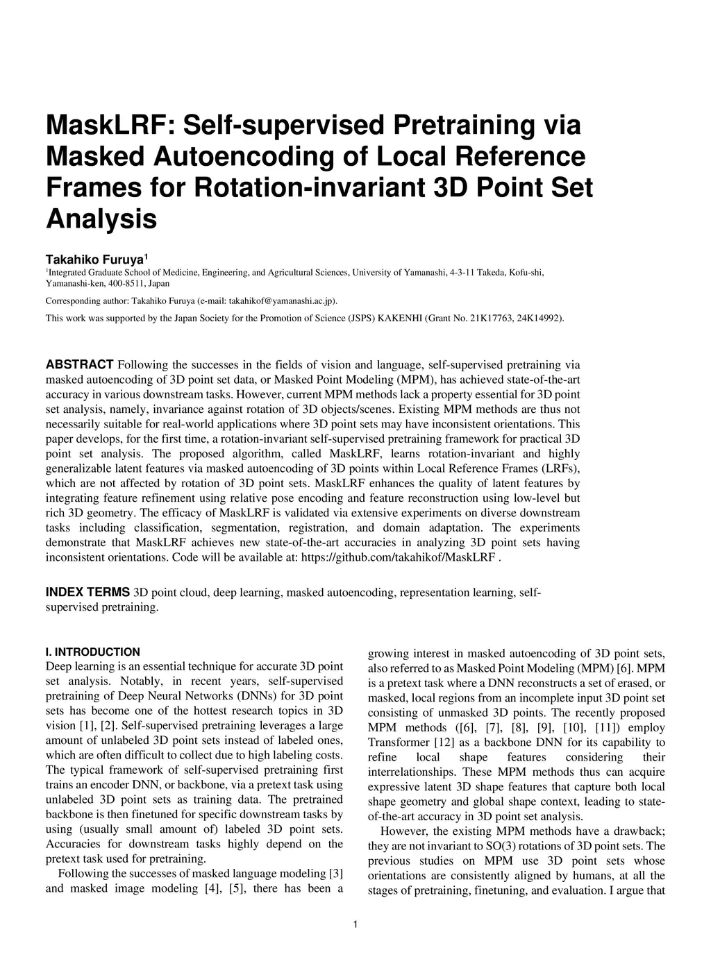 MaskLRF: Self-supervised Pretraining via Masked Autoencoding of Local