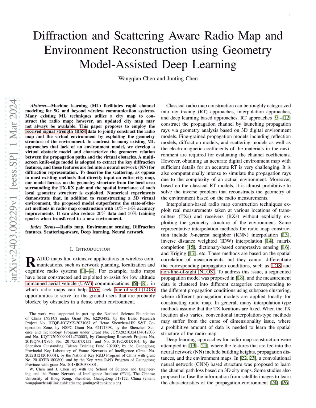 Machine learning (ML) facilitates rapid channel modeling for 5G and beyond wireless communication systems. Many existing ML techniques utilize a city map to construct the radio map; however, an updated city map may not always be available. This paper proposes to employ the received signal strength (RSS) data to jointly construct the radio map and the virtual environment by exploiting the geometry structure of the environment. In contrast to many existing ML approaches that lack of an environment model, we develop a virtual obstacle model and characterize the geometry relation between the propagation paths and the virtual obstacles. A multi-screen knife-edge model is adopted to extract the key diffraction features, and these features are fed into a neural network (NN) for diffraction representation. To describe the scattering, as oppose to most existing methods that directly input an entire city map, our model focuses on the geometry structure from the local area surrounding the TX-RX pair and the spatial invariance of such local geometry structure is exploited. Numerical experiments demonstrate that, in addition to reconstructing a 3D virtual environment, the proposed model outperforms the state-of-the-art methods in radio map construction with 10%-18% accuracy improvements. It can also reduce 20% data and 50% training epochs when transferred to a new environment.