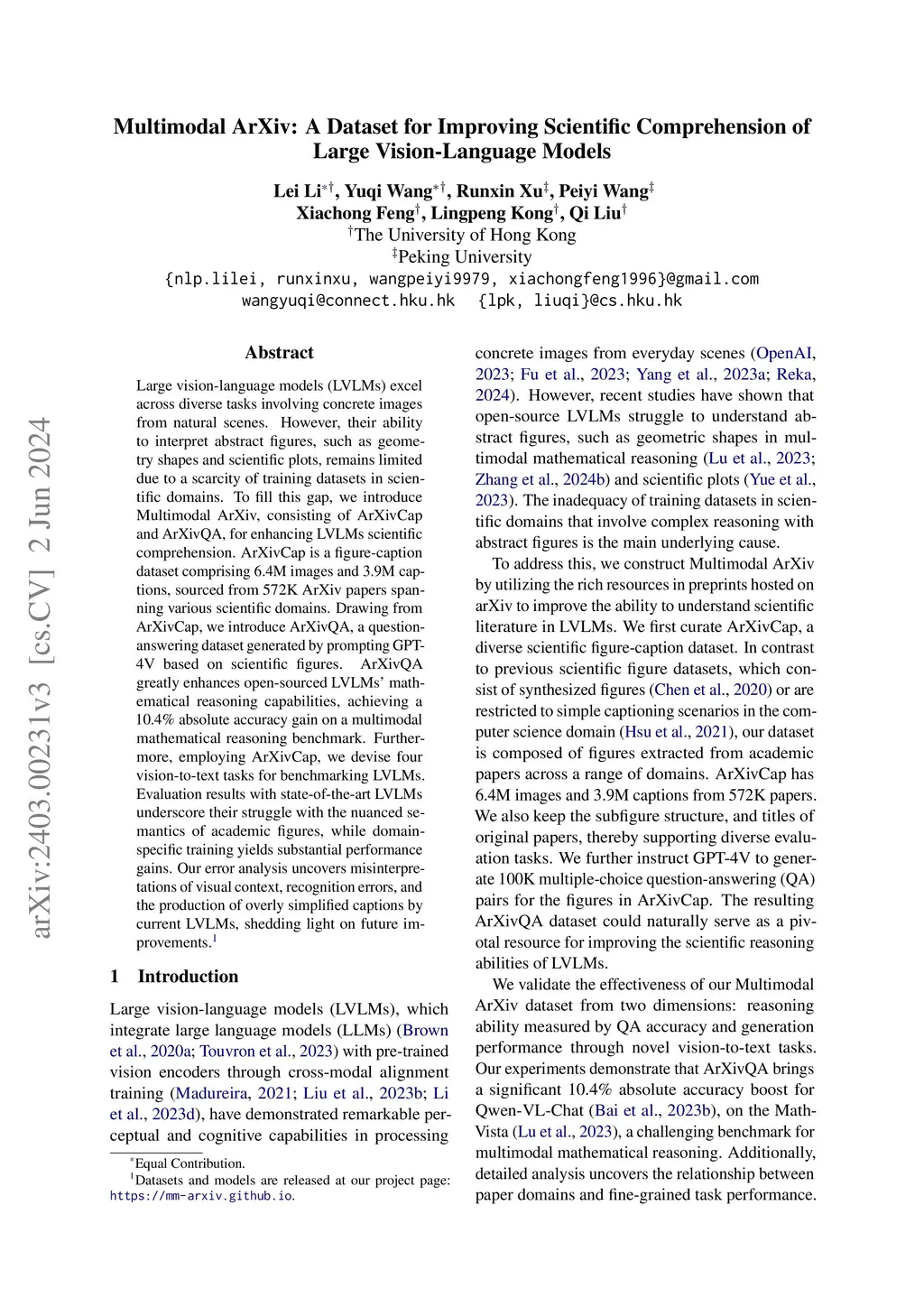 Multimodal ArXiv: A Dataset for Improving Scientific Comprehension of
