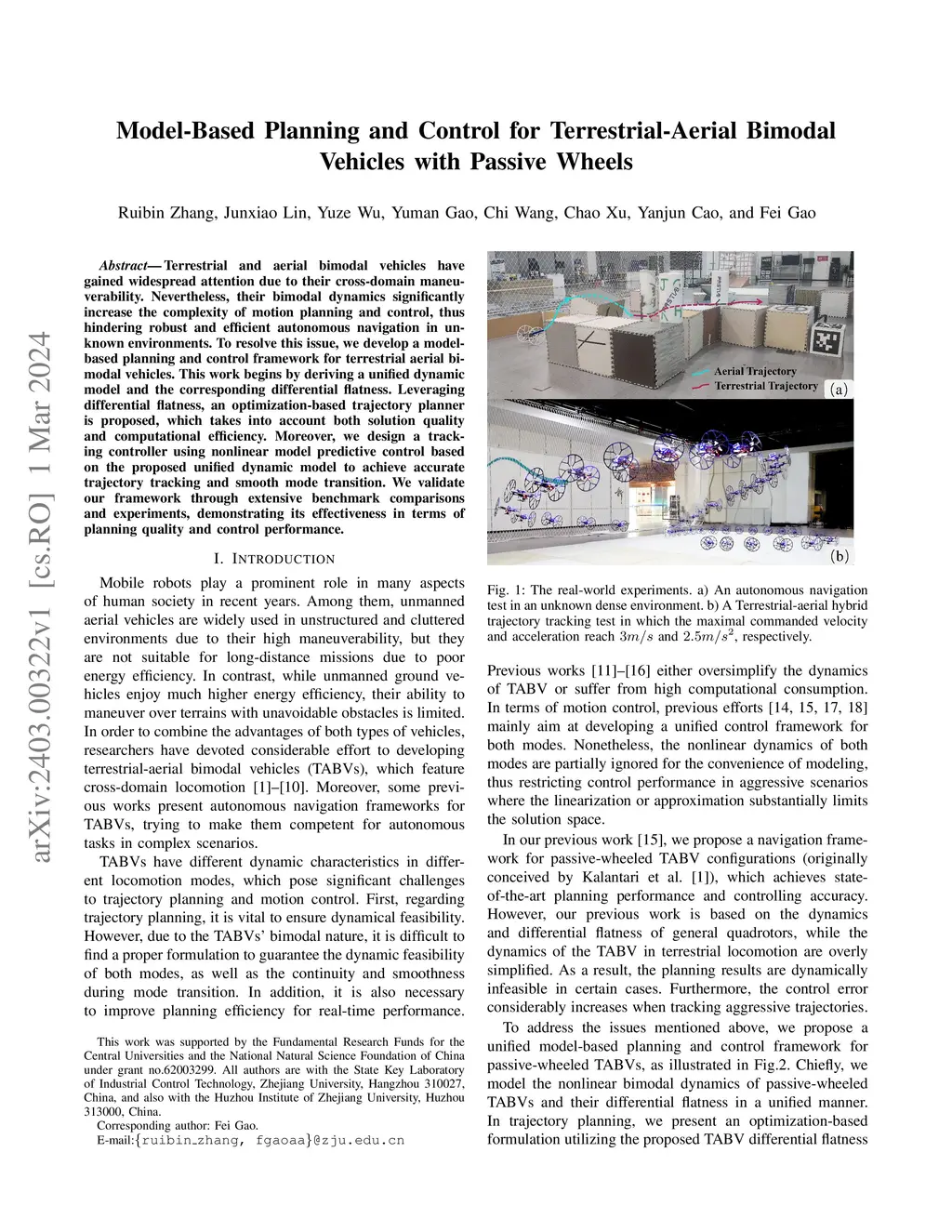 Terrestrial and aerial bimodal vehicles have gained widespread attention due to their cross-domain maneuverability. Nevertheless, their bimodal dynamics significantly increase the complexity of motion planning and control, thus hindering robust and efficient autonomous navigation in unknown environments. To resolve this issue, we develop a model-based planning and control framework for terrestrial aerial bi-modal vehicles. This work begins by deriving a unified dynamic model and the corresponding differential flatness. Leveraging differential flatness, an optimization-based trajectory planner is proposed, which takes into account both solution quality and computational efficiency. Moreover, we design a tracking controller using nonlinear model predictive control based on the proposed unified dynamic model to achieve accurate trajectory tracking and smooth mode transition. We validate our framework through extensive benchmark comparisons and experiments, demonstrating its effectiveness in terms of planning quality and control performance.