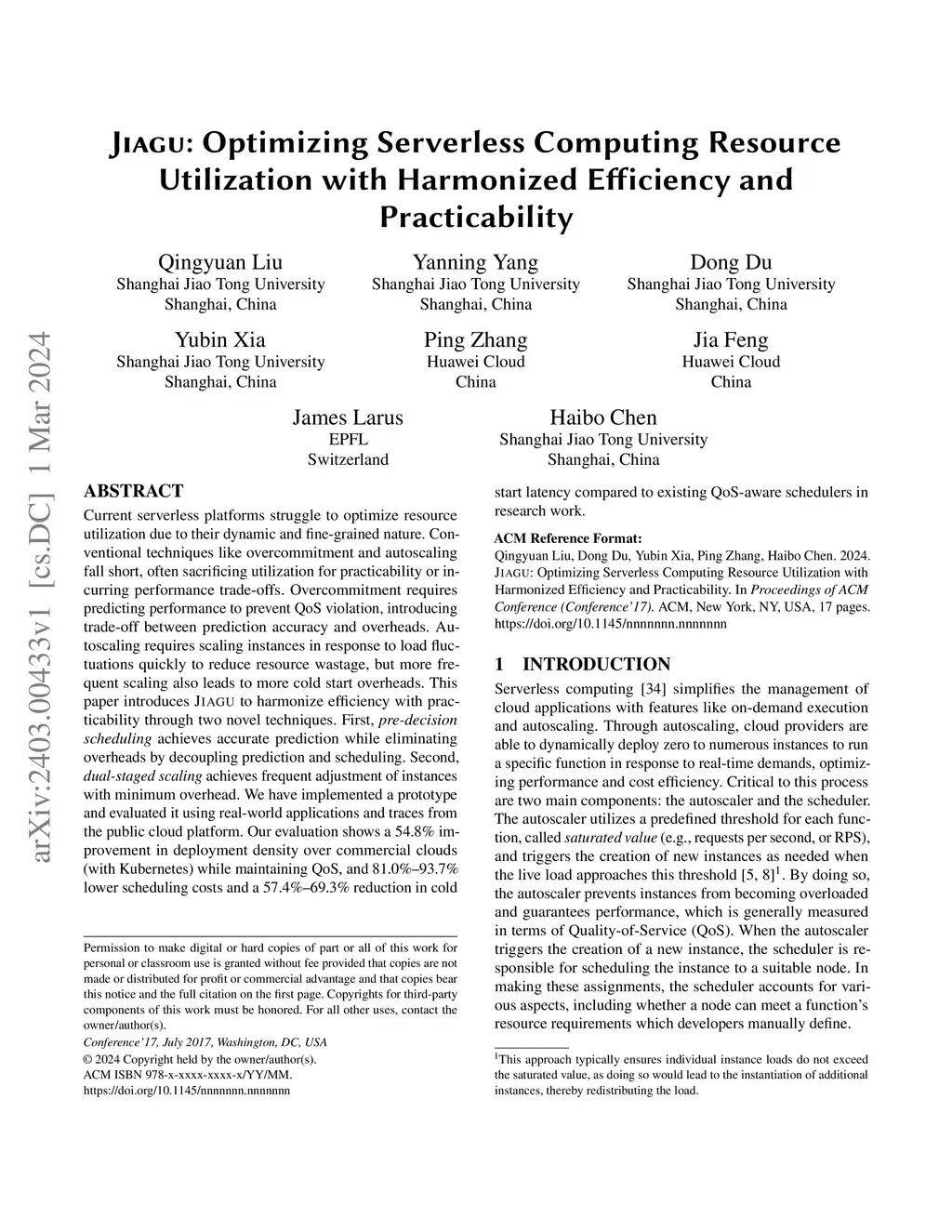 Jiagu: Optimizing Serverless Computing Resource Utilization with