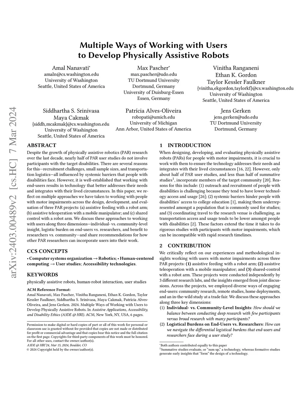 Despite the growth of physically assistive robotics (PAR) research over the last decade, nearly half of PAR user studies do not involve participants with the target disabilities. There are several reasons for this -- recruitment challenges, small sample sizes, and transportation logistics -- all influenced by systemic barriers that people with disabilities face. However, it is well-established that working with end-users results in technology that better addresses their needs and integrates with their lived circumstances. In this paper, we reflect on multiple approaches we have taken to working with people with motor impairments across the design, development, and evaluation of three PAR projects: (a) assistive feeding with a robot arm; (b) assistive teleoperation with a mobile manipulator; and (c) shared control with a robot arm. We discuss these approaches to working with users along three dimensions -- individual vs. community-level insight, logistic burden on end-users vs. researchers, and benefit to researchers vs. community -- and share recommendations for how other PAR researchers can incorporate users into their work.