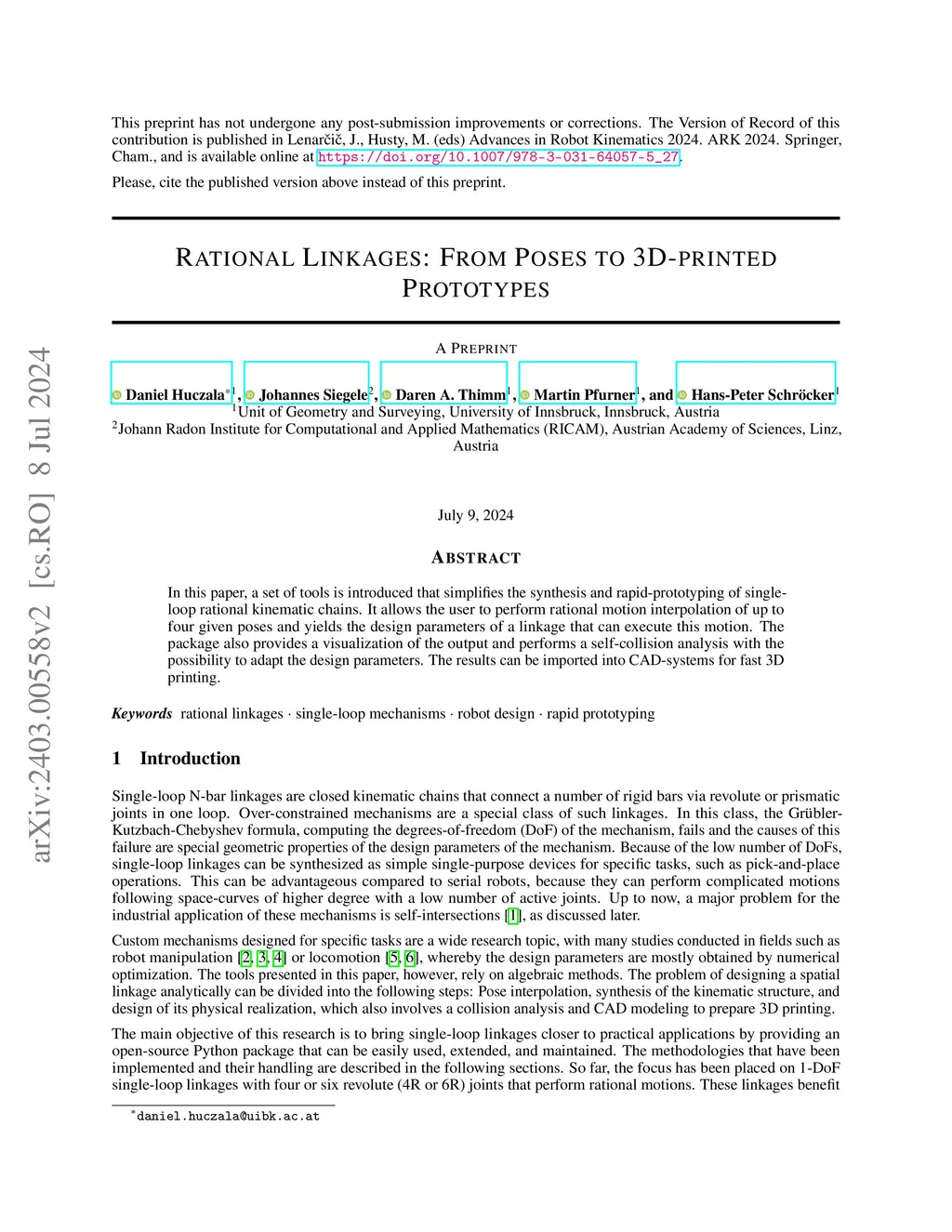 Rational Linkages: From Poses to 3D-printed Prototypes