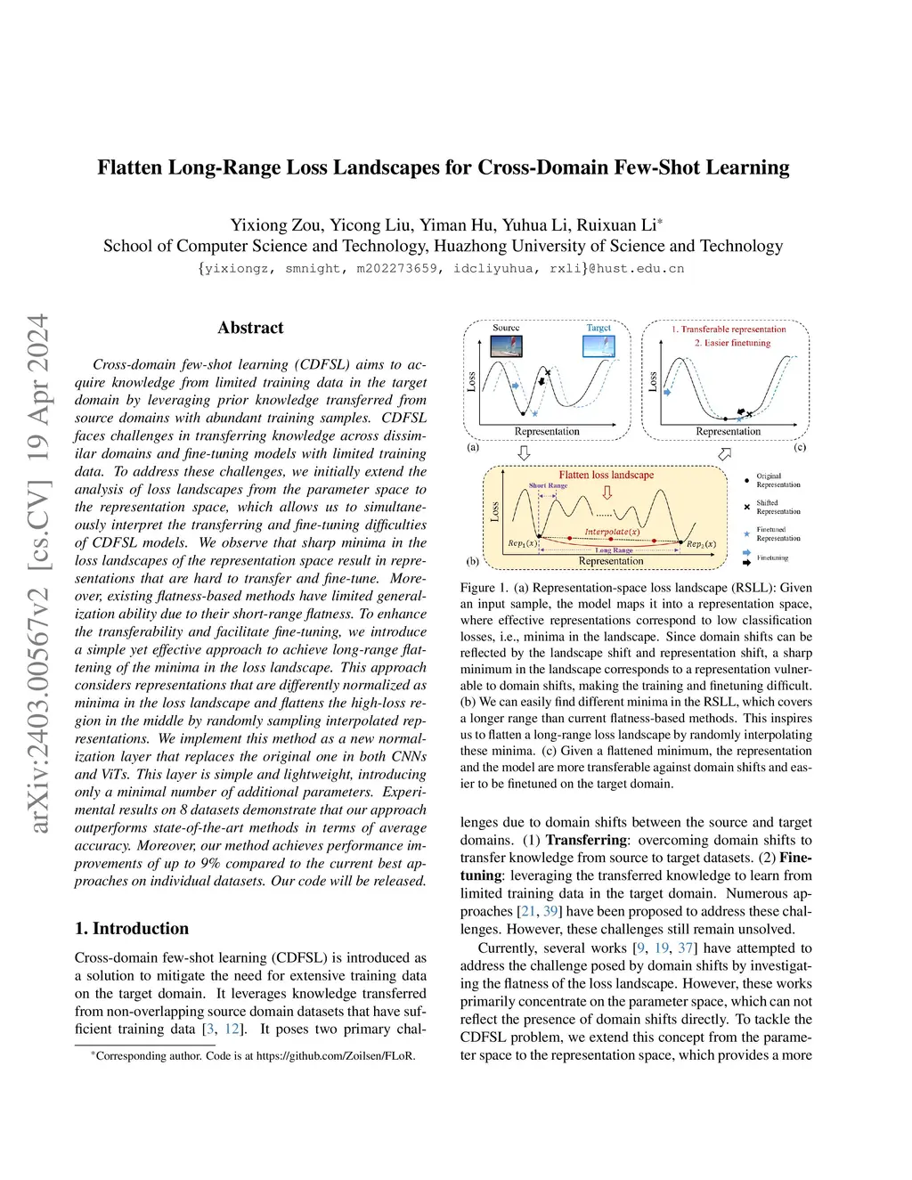Flatten Long-Range Loss Landscapes for Cross-Domain Few-Shot Learning