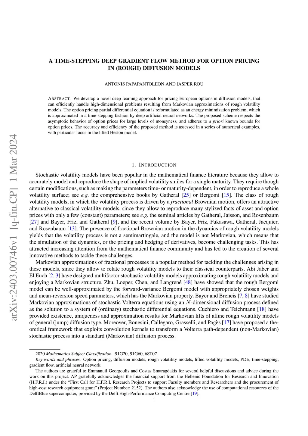 A time-stepping deep gradient flow method for option pricing in (rough) diffusion models