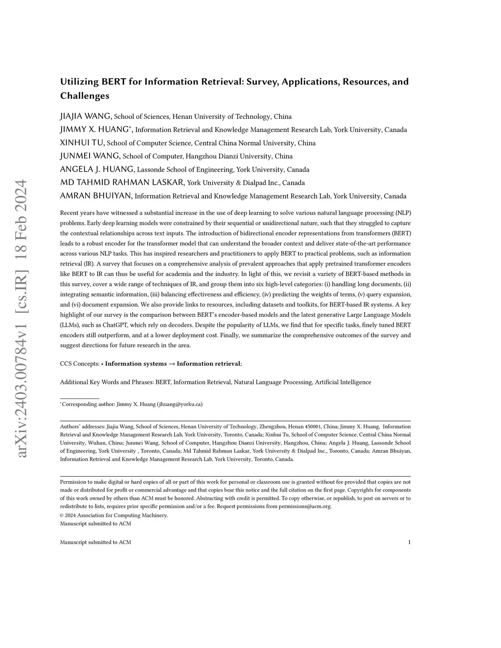 Utilizing BERT for Information Retrieval: Survey, Applications,