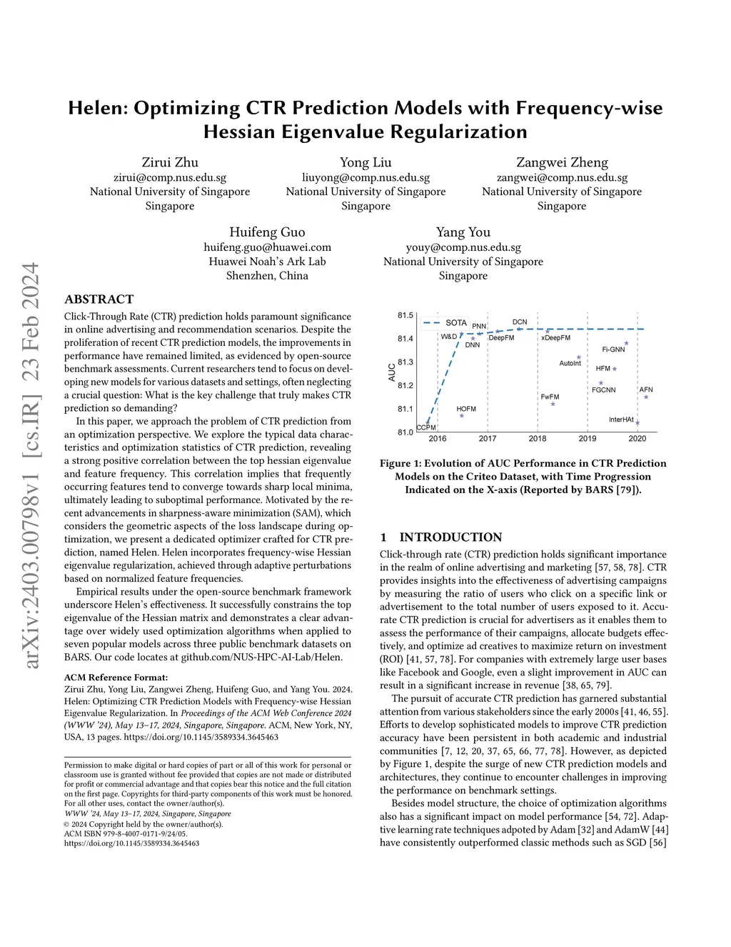 Helen: Optimizing CTR Prediction Models with Frequency-wise Hessian