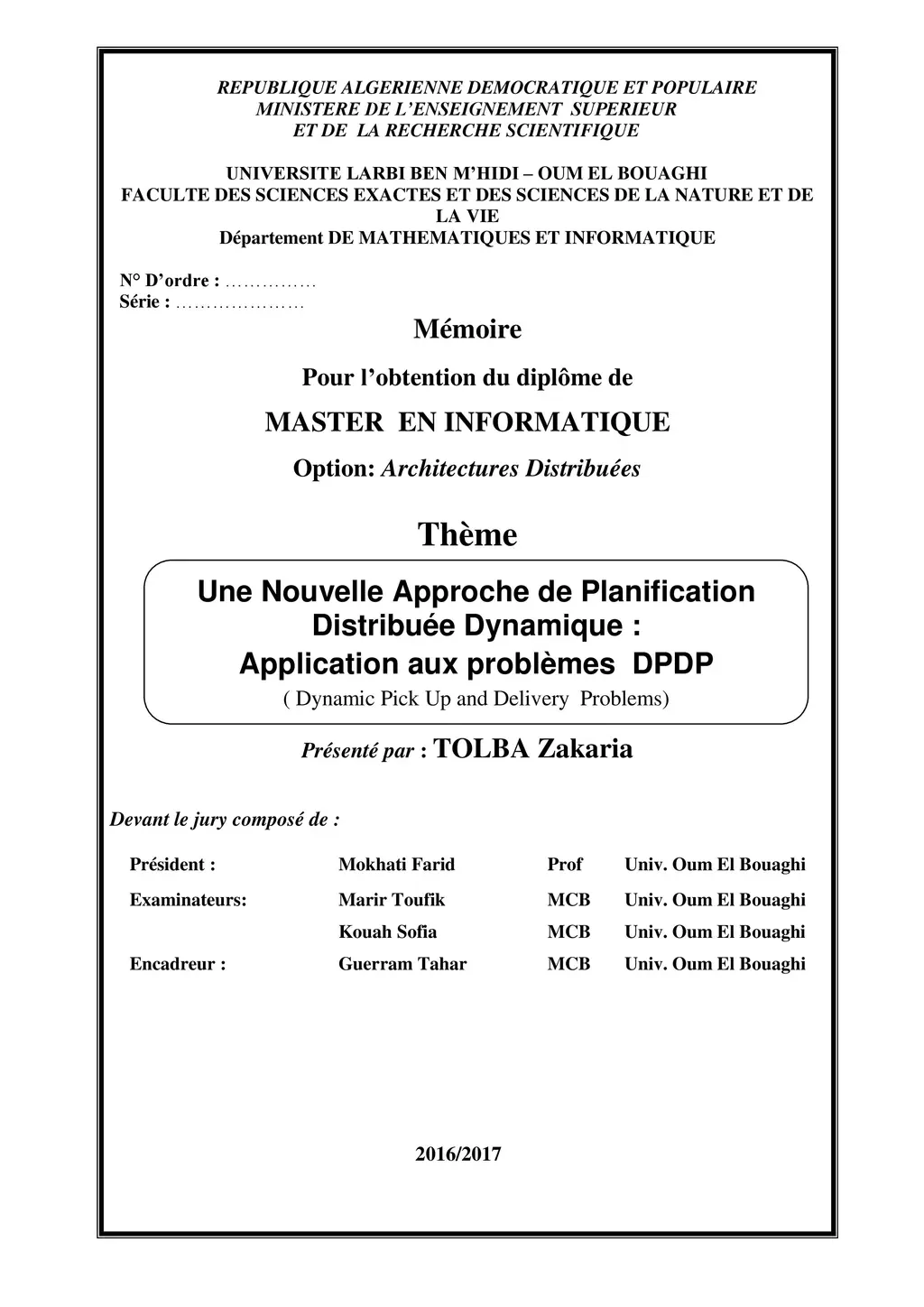 A New Dynamic Distributed Planning Approach: Application to DPDP
