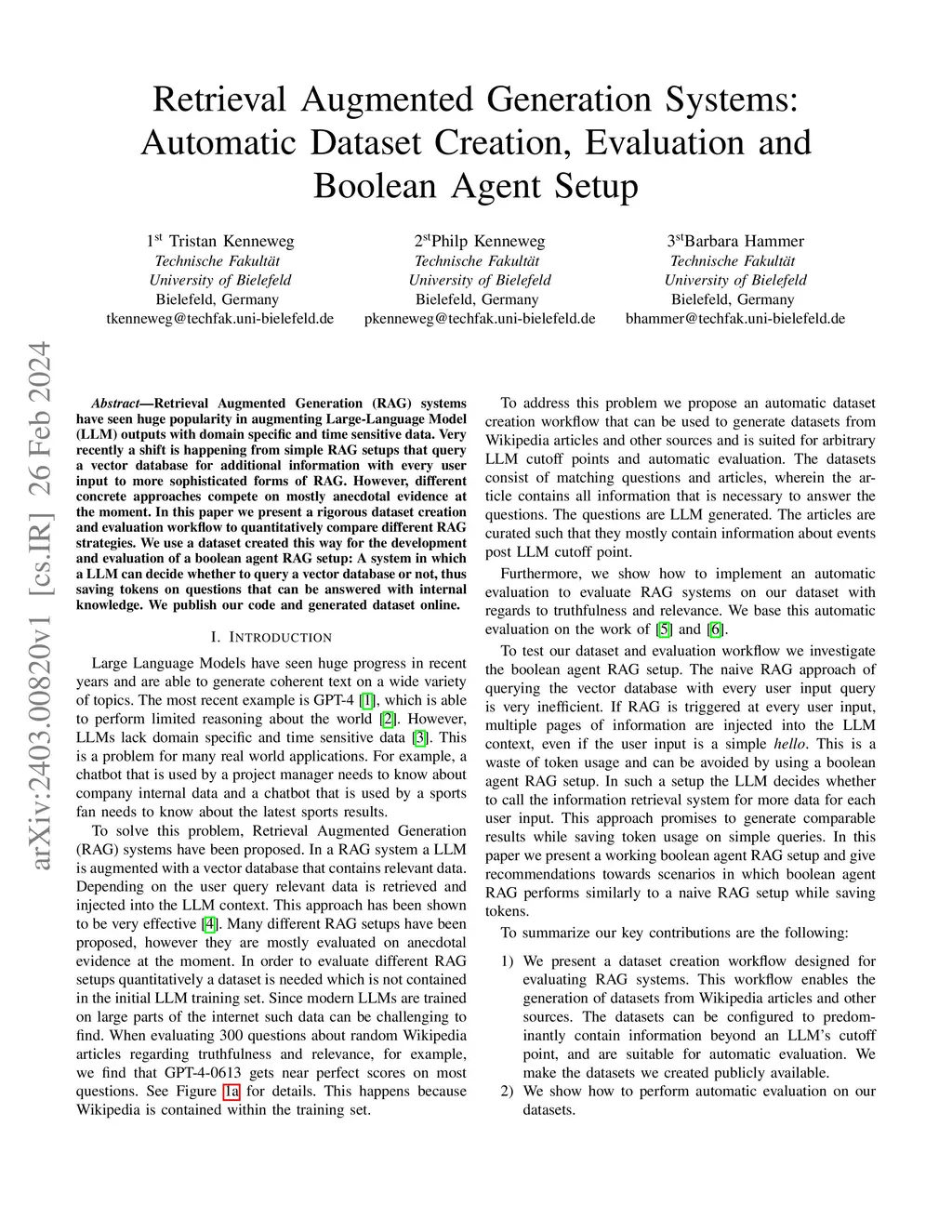 Retrieval Augmented Generation Systems: Automatic Dataset Creation,